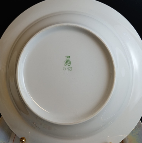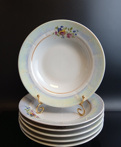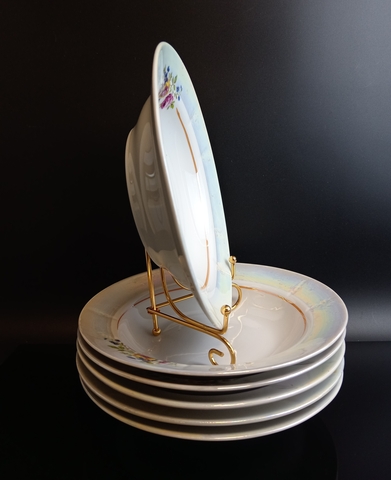 Тарелки для горячего набор из 6 тарелок фарфоровые, роспись цветы, перламутр, Добруш ФЗ, винтаж СССР 1978-1991 гг. Диаметр - 20.5 см. Присутствуют следы использования - состояние на фото