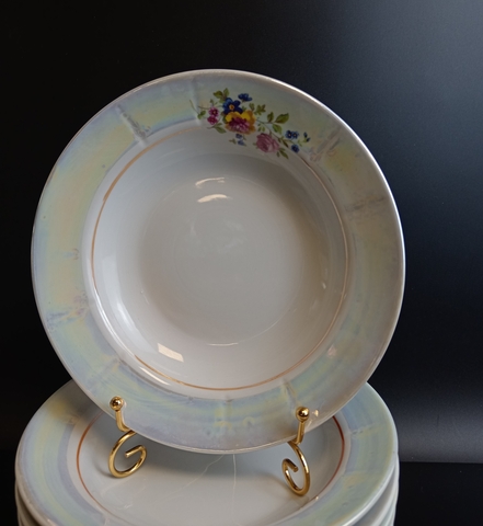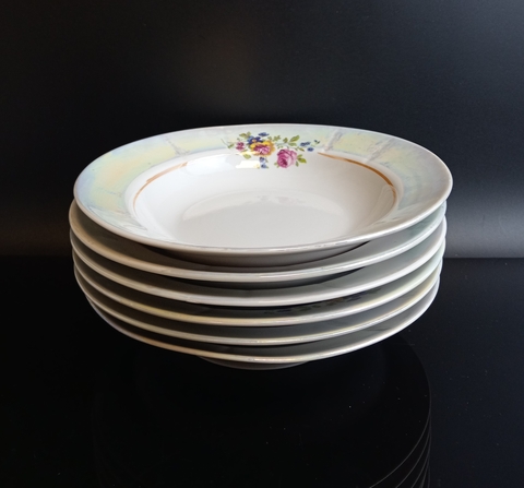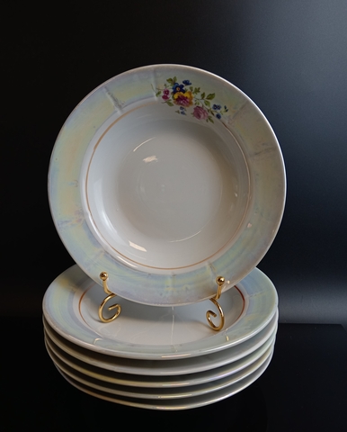 Тарелки для горячего набор из 6 тарелок фарфоровые, роспись цветы, перламутр, Добруш ФЗ, винтаж СССР 1978-1991 гг. Диаметр - 20 см. Присутствуют следы использования - состояние на фото