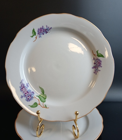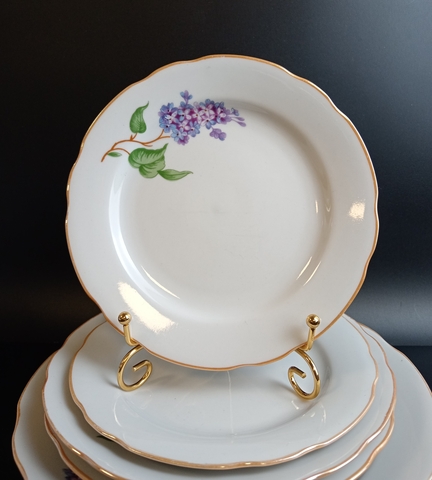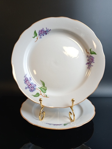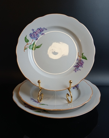 Тарелки фарфоровые набор из 5 штук разных размеров : 2 тарелки D-23 см, 2 тарелки d-17 см и 2 тарелки d-20 см, Дулево ФЗ, роспись сирень цветы, винтаж СССР 1968-1991 гг.