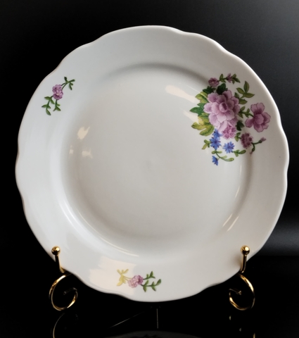 Тарелки набор из 2 штук для горячих блюд, фарфор, деколь цветы, Дулево ФЗ, диаметр - 24 см, винтаж СССР 1964-1991 гг. Состояние и комплектация на фото