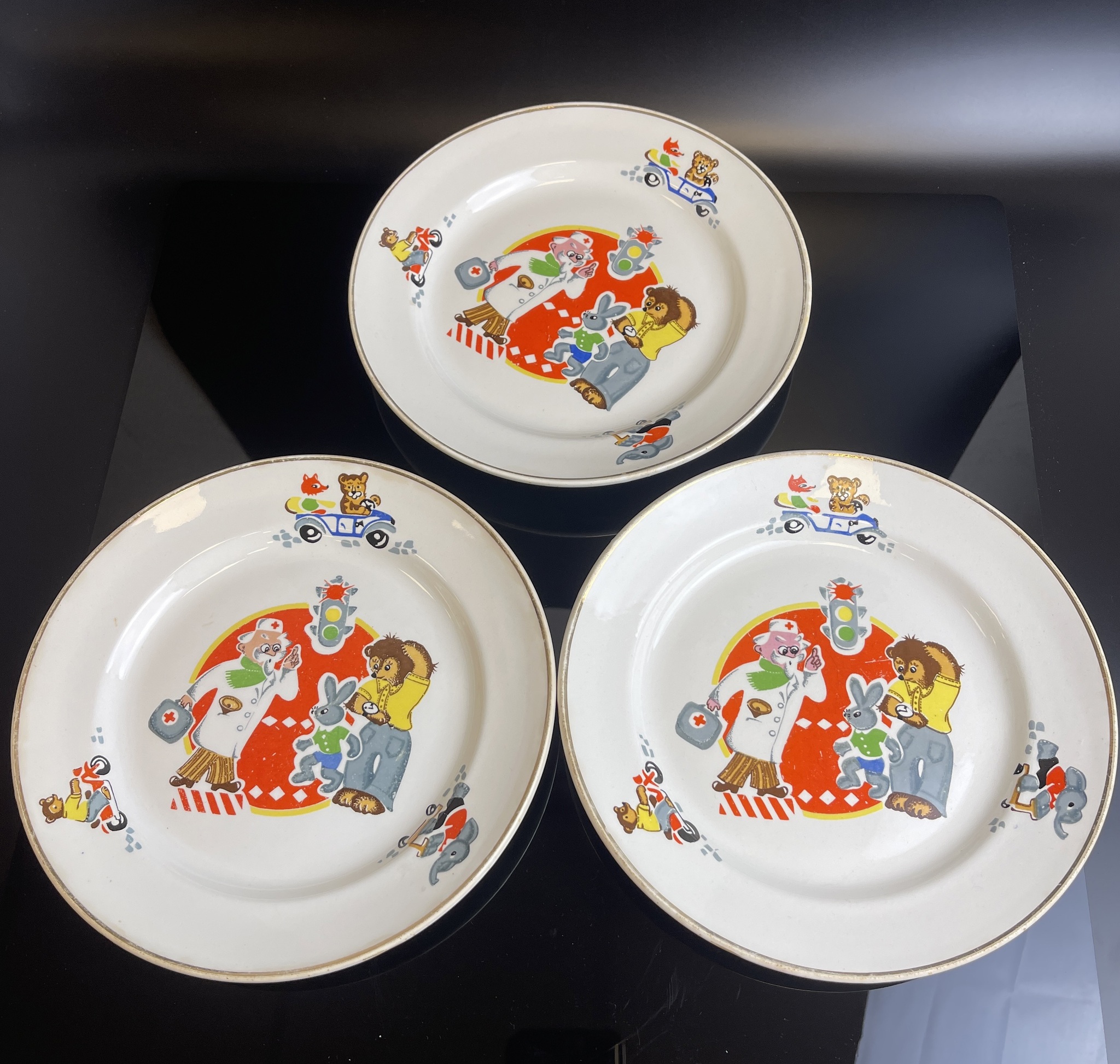 Тарелки набор из 3 штук, Редкие в коллекцию, тарелка детская Доктор Айболит, фаянс, ЗиК клеймо, Конаково, СССР. Диаметр - 20 см. Присутствуют следы использования - царапинки и потертые места, состояние на фото