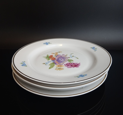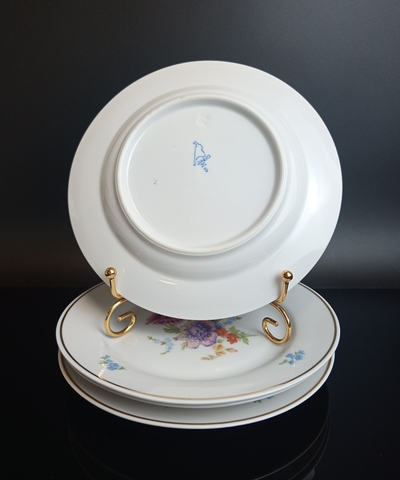 Тарелки набор из 4 штук десертные, пирожковые диаметр -17.5 см, "Мейсенский букет" Дулево ФЗ, роспись цветы, позолота, винтаж СССР 1968-1991 гг. Присутствуют следы использования, потертости- состояние на фото.