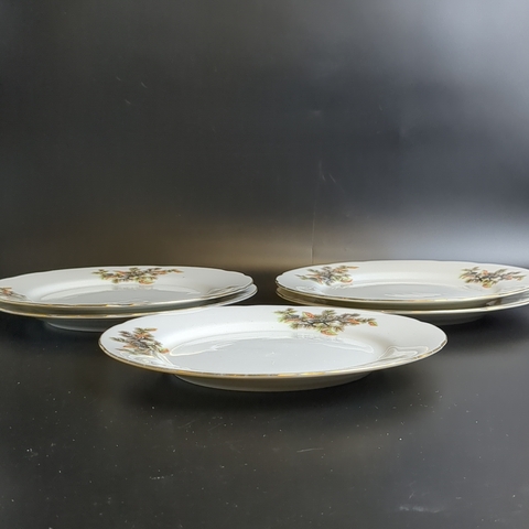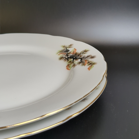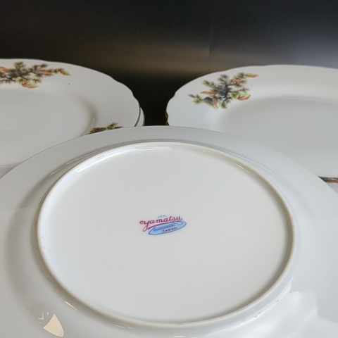 Тарелки набор из 5 штук, для второго блюда,для горячего d-20.5 см, фарфор, "Шишки", еловые ветки, золочение, Yamatsu, Япония, 1960-1990 гг. Состояние на фото