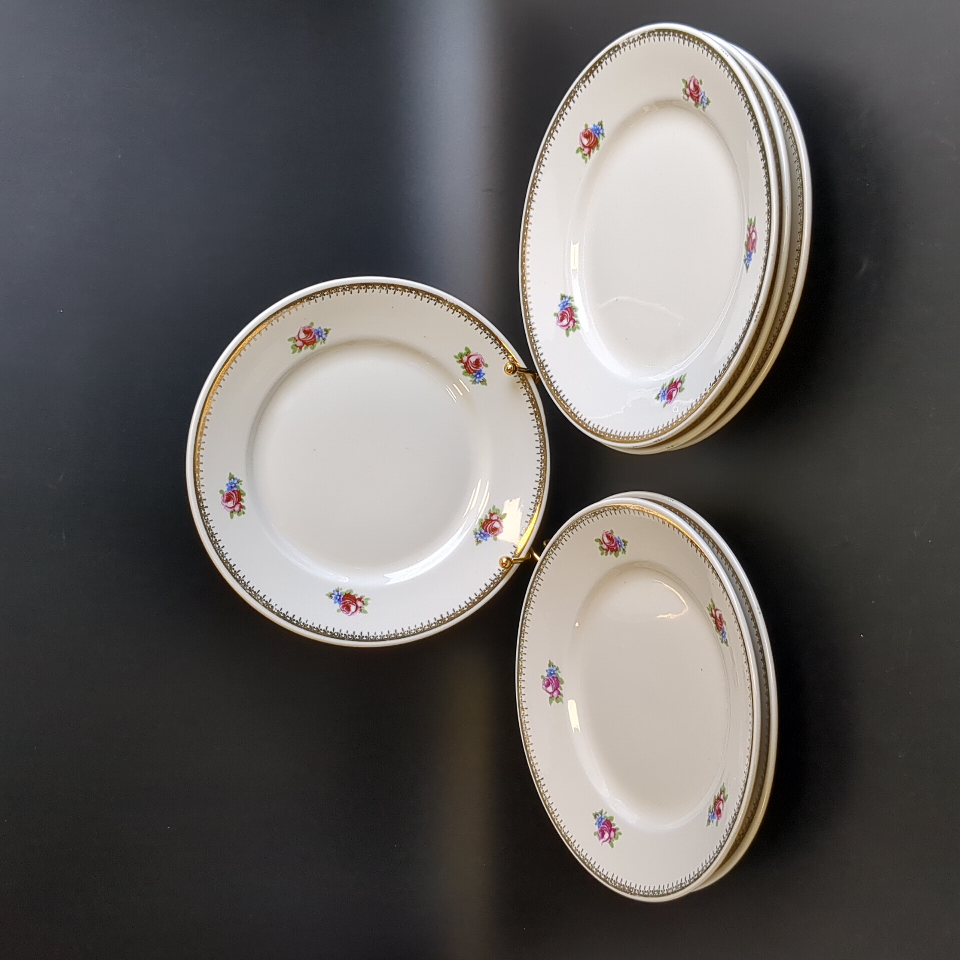 Тарелки набор из 6 штук пирожковые, фарфор, клеймо Дмитровский ФЗ (Вербилки), цветы, диаметр - 19 см, винтаж СССР 1950-е гг, редкие. Тарелки советского времени, идеальны для порционных салатов, десертов. Состояние и комплектация на фото