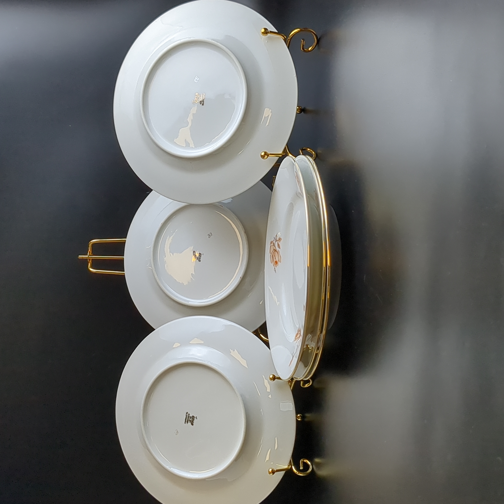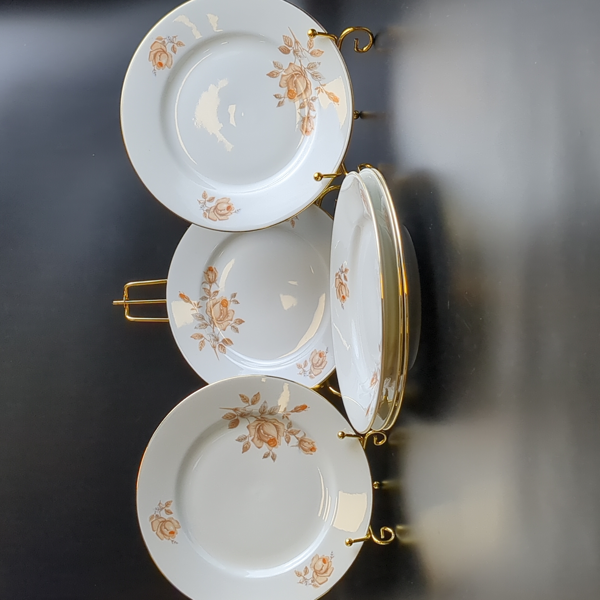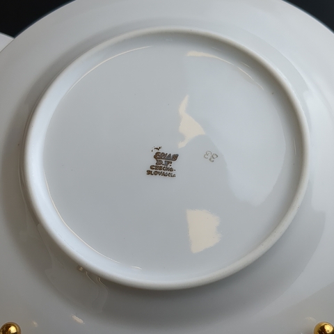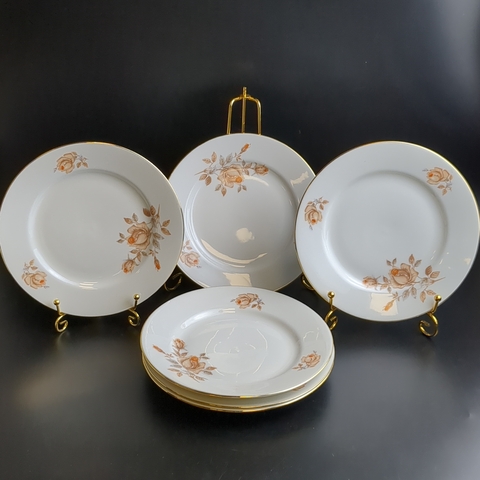 Тарелки пирожковые набор из 6 штук, фарфор, роспись, из сервиза "Коралловая роза", золочение, EPIAG D.F Чехословакия, винтаж времен СССР 1960-1990 гг. Тарелки подойдут для подачи порционных салатов и десертов.