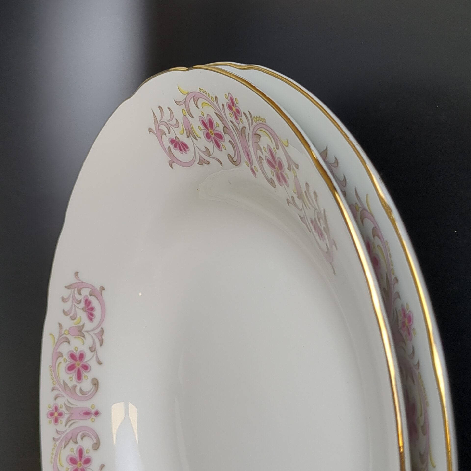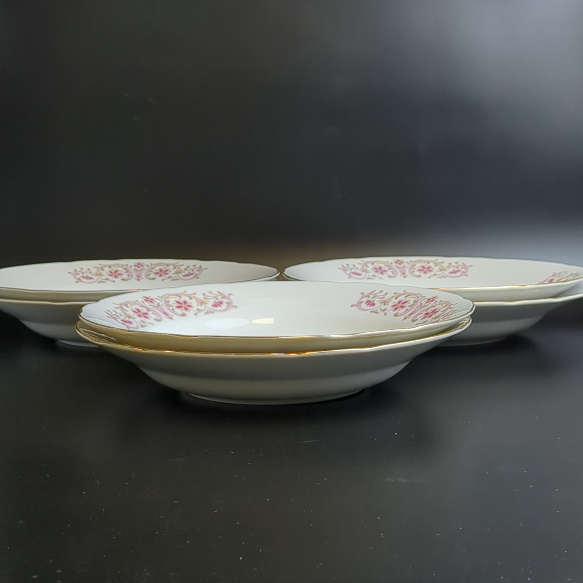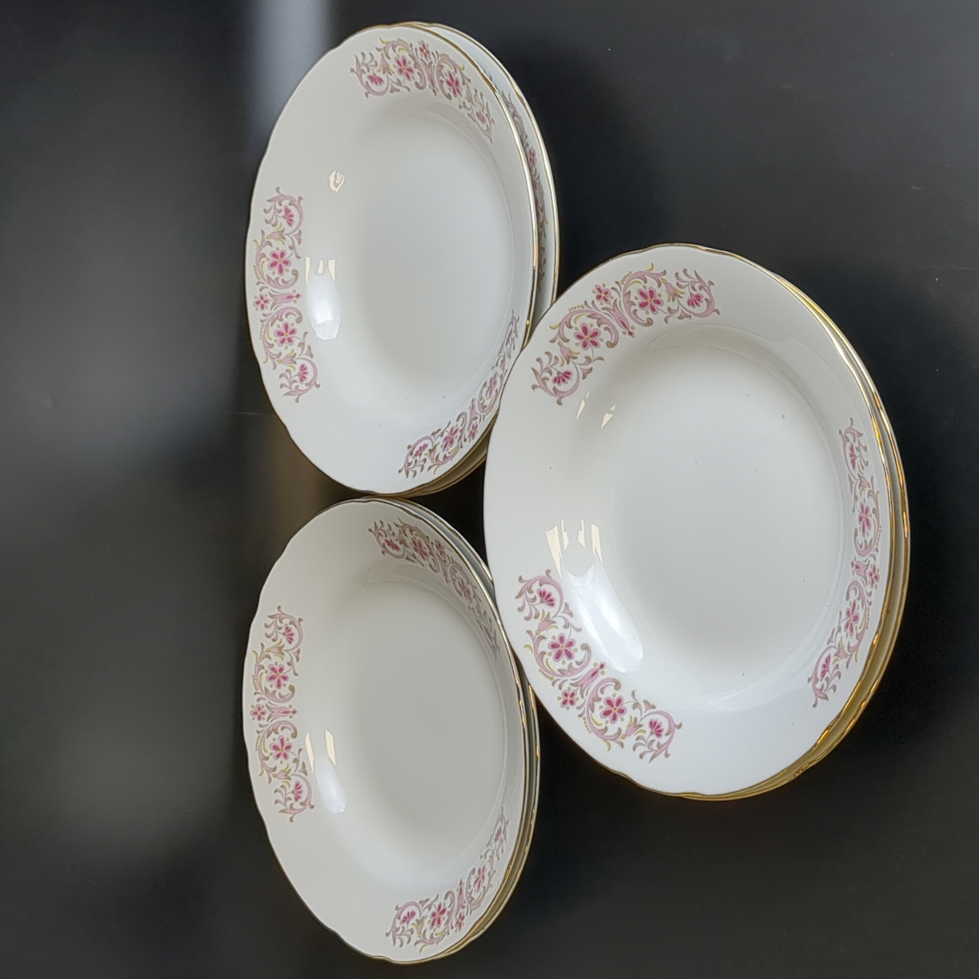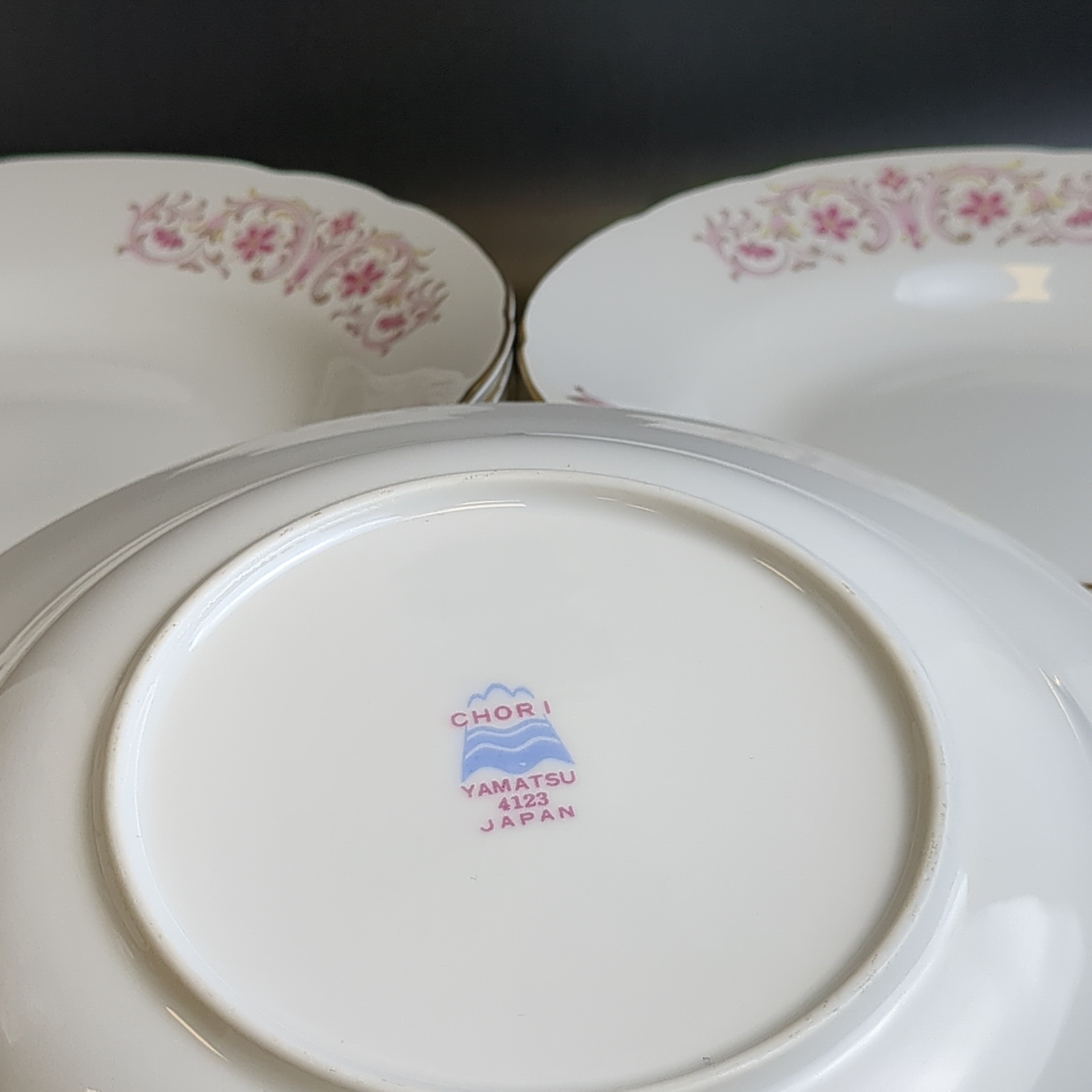 Тарелки суповые набор из 6 штук Chori Japan, d-23 см Япония фарфор глубокие, роспись цветы, позолота, винтаж 1950-1980 гг.