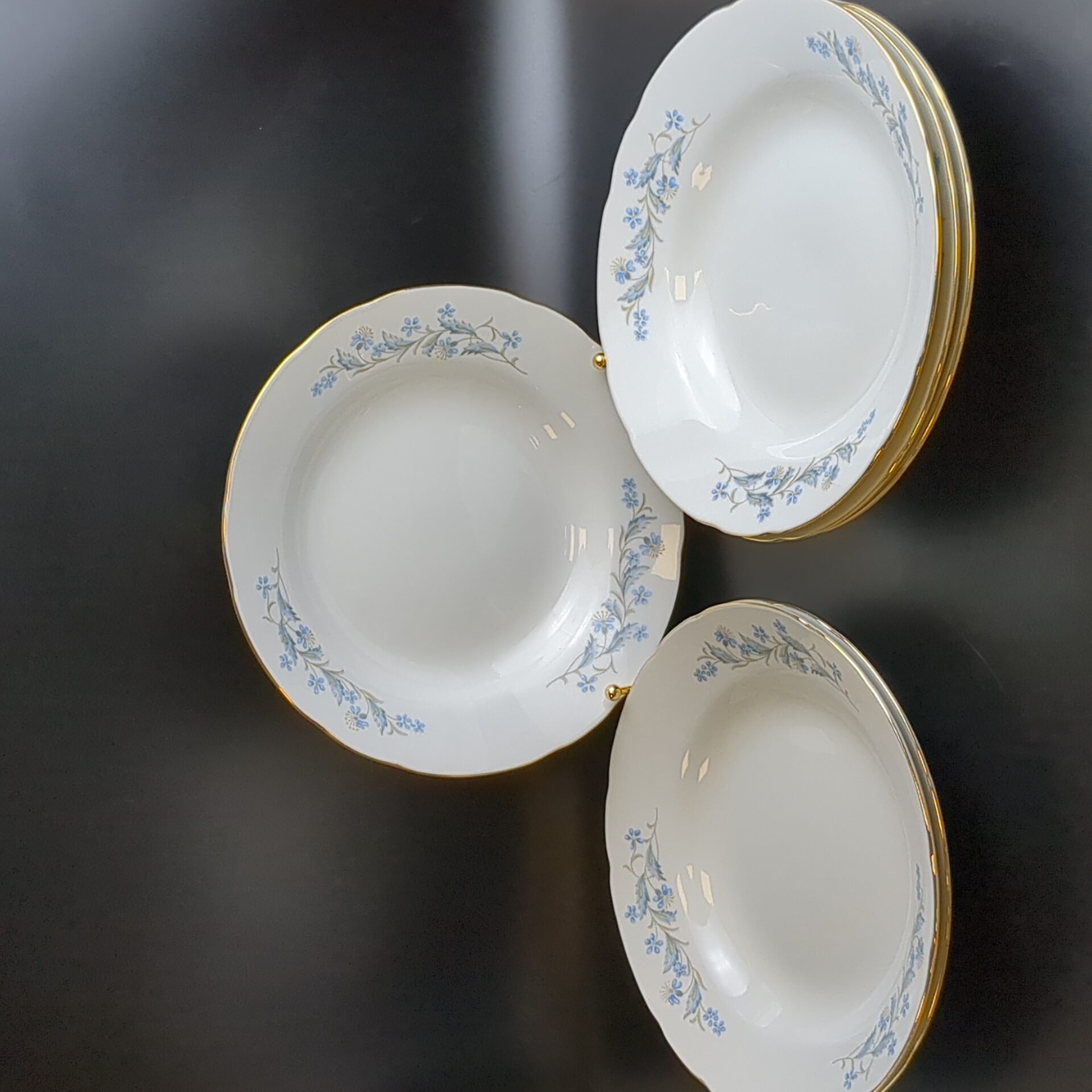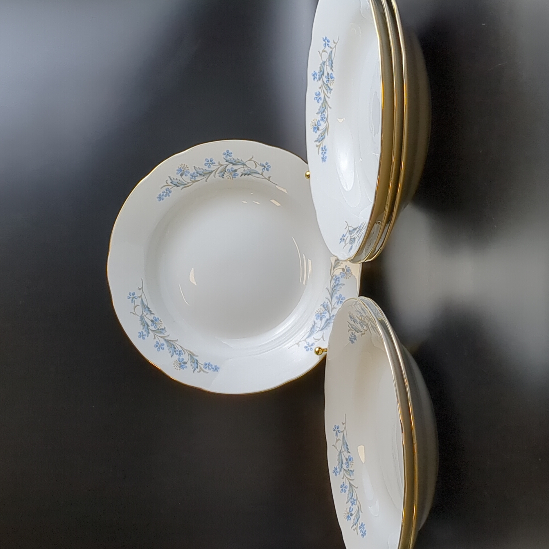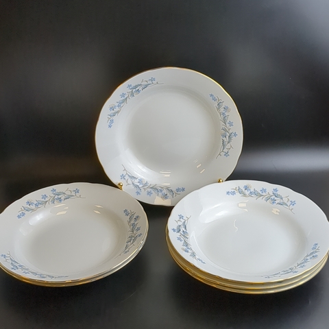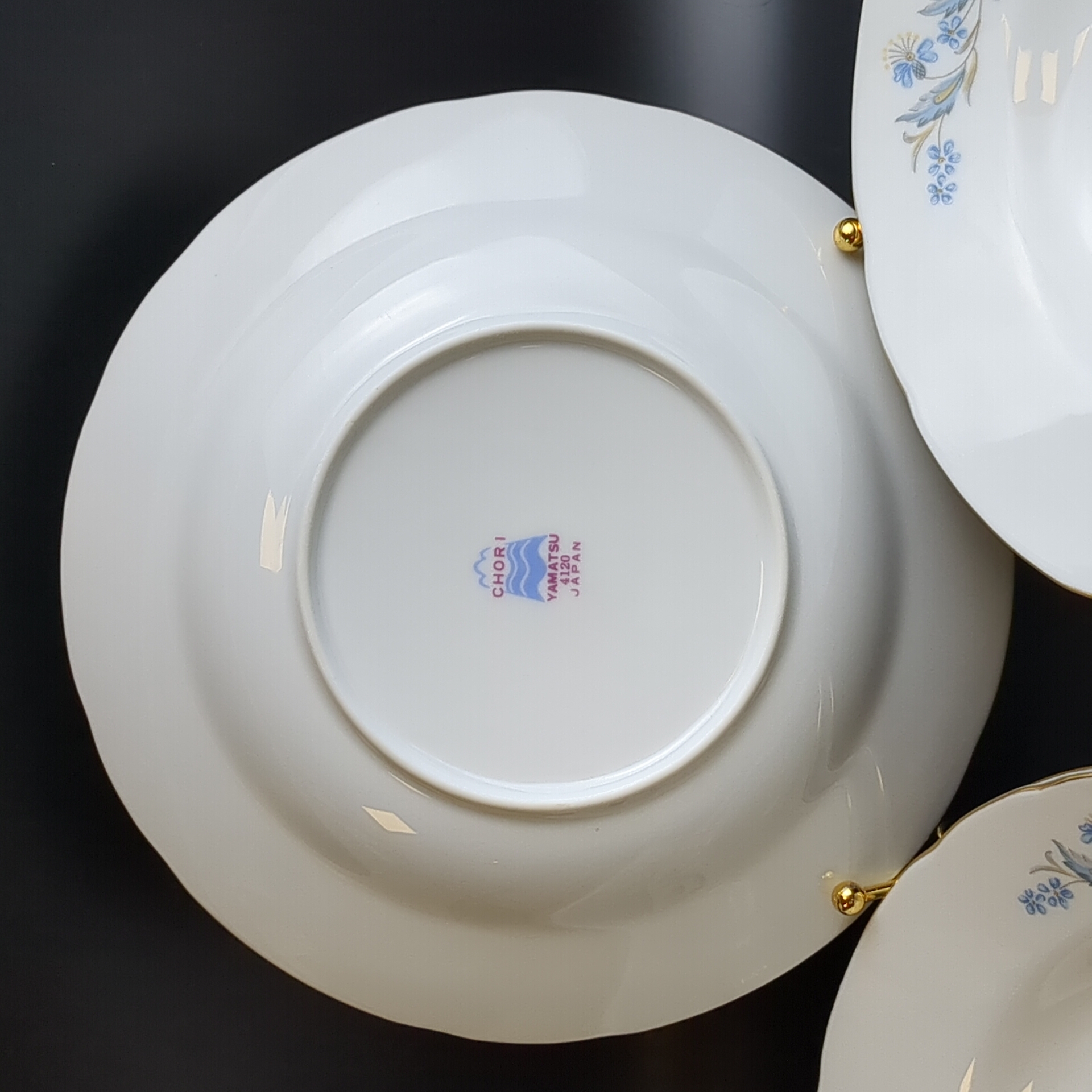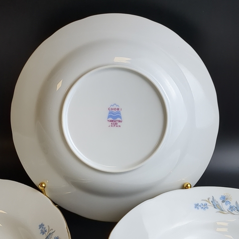 Тарелки суповые набор из 6 штук фарфоровые, синие цветы, незабудки, роспись , позолота, Yamatsu CHORI Japan, винтаж Япония, люкс 1970-1990 гг. Состояние и комплектация на фото