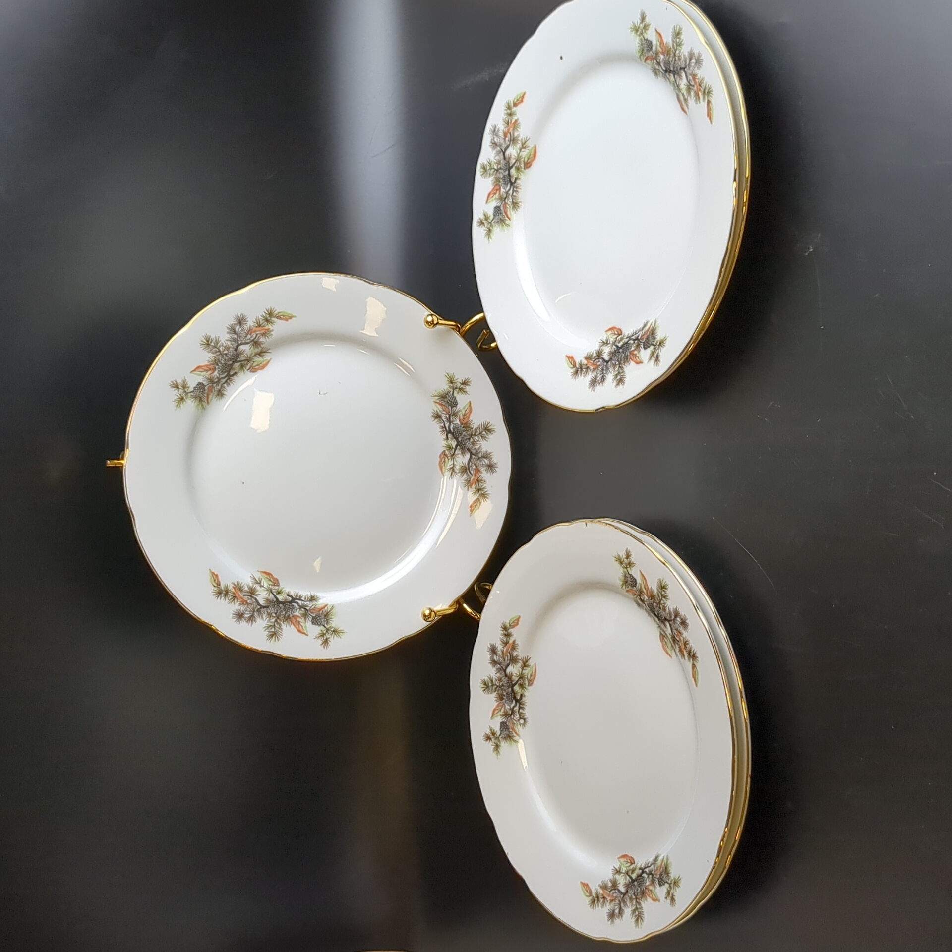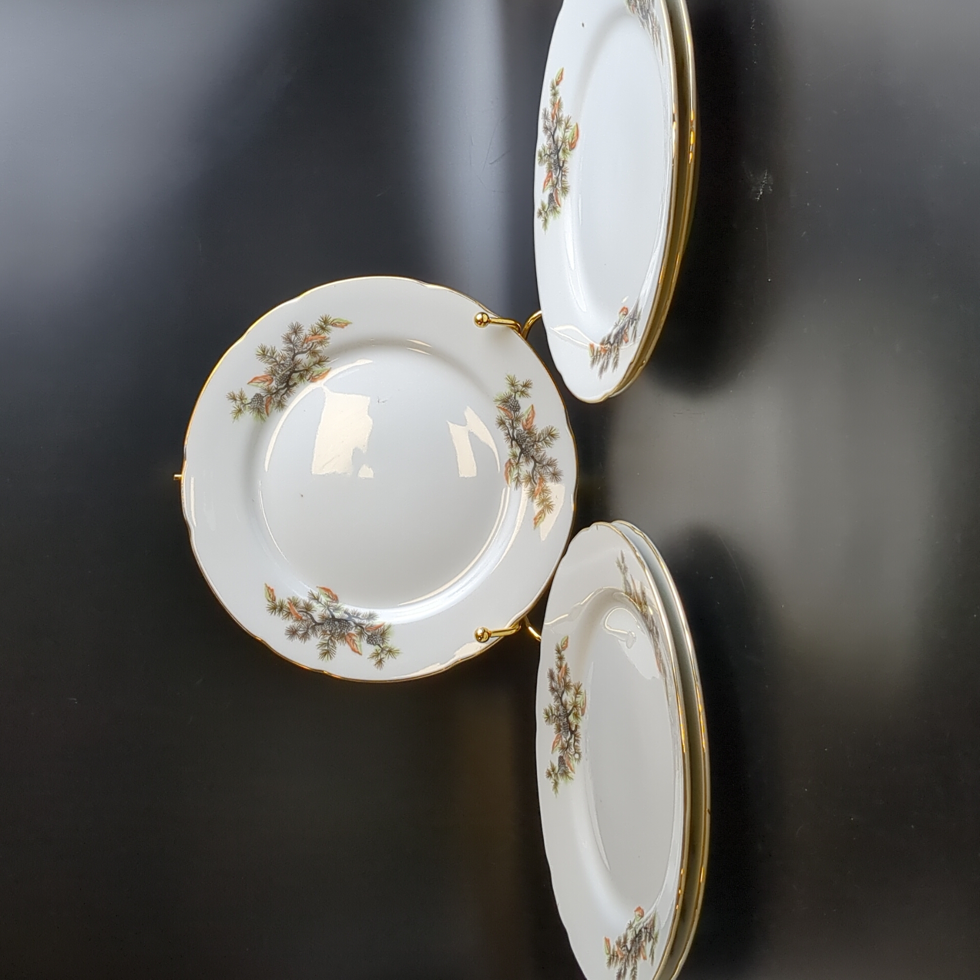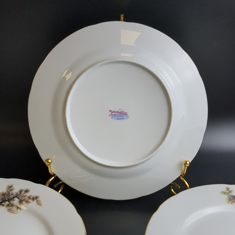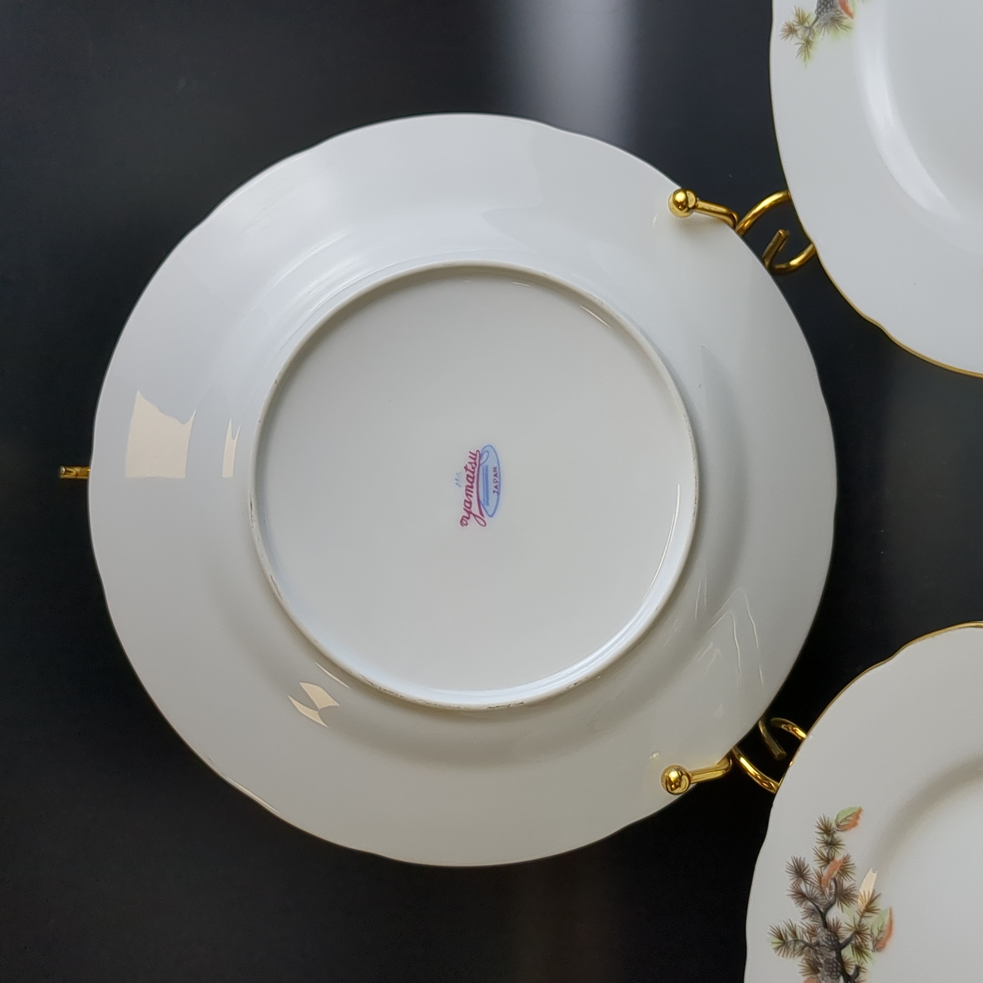 Тарелки под горячее набор из 5 штук фарфоровые, роспись , позолота, "Сосновые шишки", Yamatsu CHORI Japan, винтаж Япония, люкс 1970-1990 гг. Диаметр - 20.5 см. Состояние и комплектация на фото
