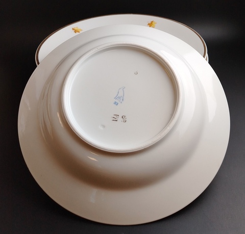Тарелки суповые набор из 6 штук, «Кленовые листья», фарфор, роспись, Дулево ФЗ, винтаж СССР. Диаметр - 24.5 см. Присутствуют следы использования- состояние на фото