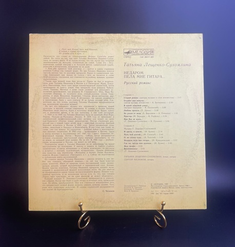 Татьяна Лещенко-Сухомлина "Недаром пела мне гитара..." ,русский романс, LP, Виниловая пластинка 12 дюймов Мелодия СССР 1989 год