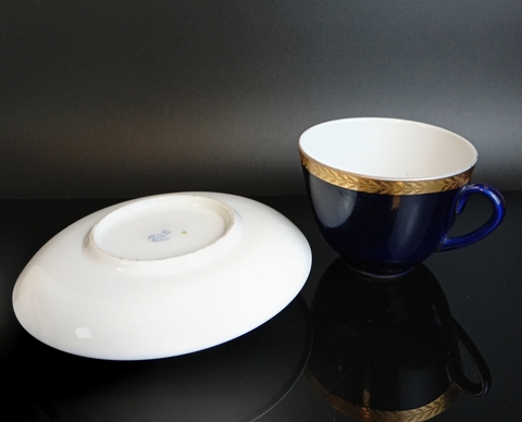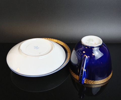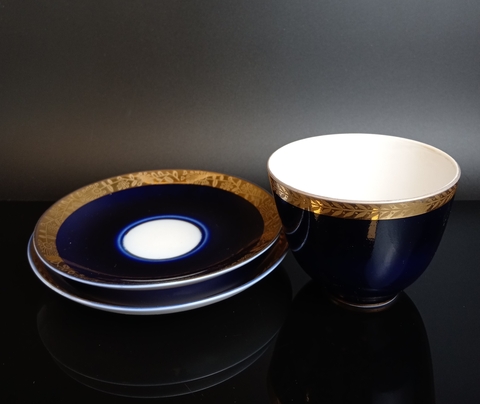 Трио чайное ЛФЗ, кобальт с позолотой, фарфор, СССР винтаж 1970-1990 гг. Присутствуют следы использования - состояние на фото.