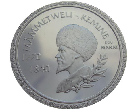 Туркменистан 500 манат 2003 Мамедвели Кемине Поэт СЕРЕБРО