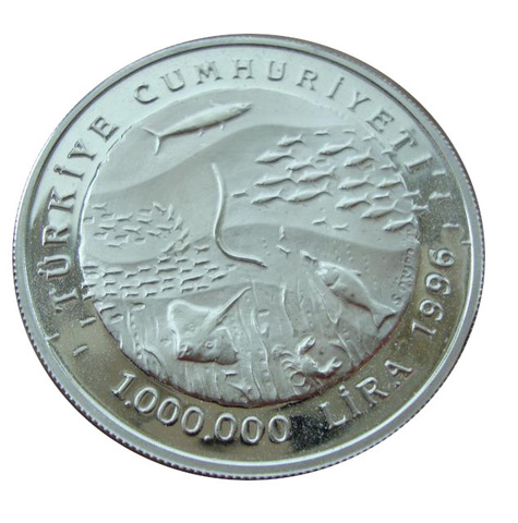 Турция 1000000 лир 1996 Средиземноморский тюлень-монах СЕРЕБРО