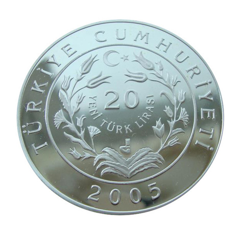 Турция 20 лир 2005 Бурый медведь СЕРЕБРО