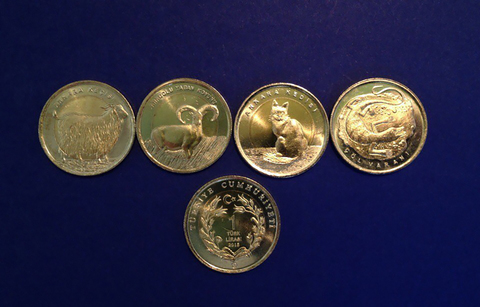 Комплект 1 лира Турция Баран, Варан, Коза, Кот 2015 г.