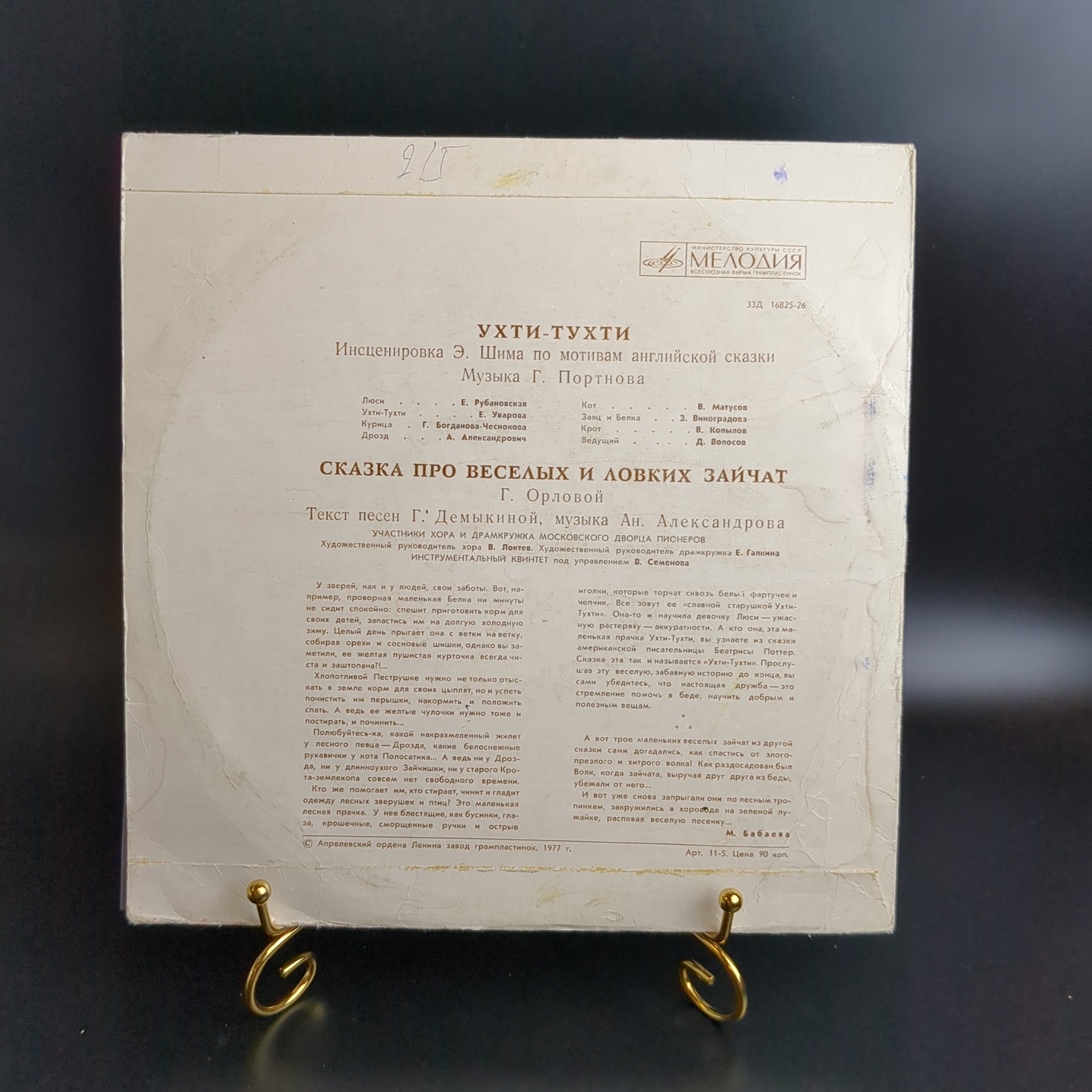 Ухти - тухти и Сказка про веселых и ловких зайчат. Виниловая пластинка 10 дюймов. Мелодия СССР 1977 год.