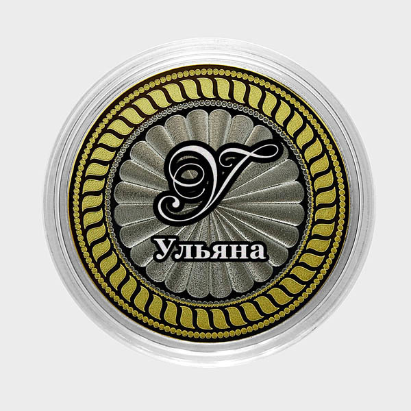 Сувенирная монета "Ульяна" номиналом 10 рублей с выгравированным изображением.