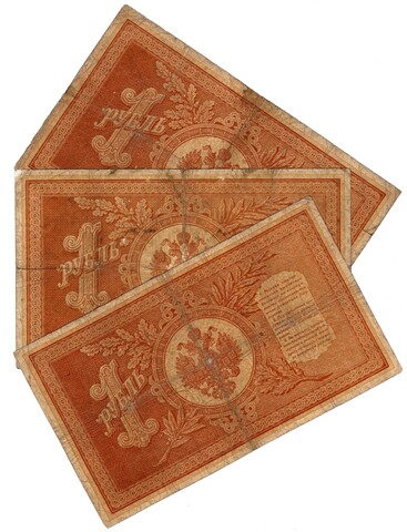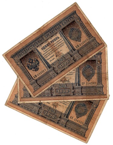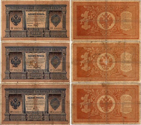 Набор из 3 кредитных билетов 1 рубль 1898 года.