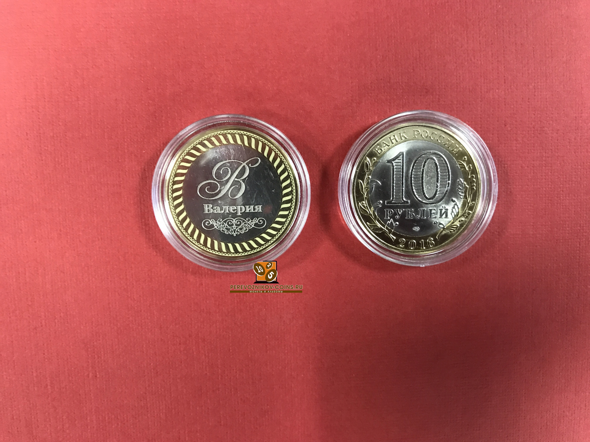 Сувенирная монета "Валерия" номиналом 10 рублей с выгравированным изображением.