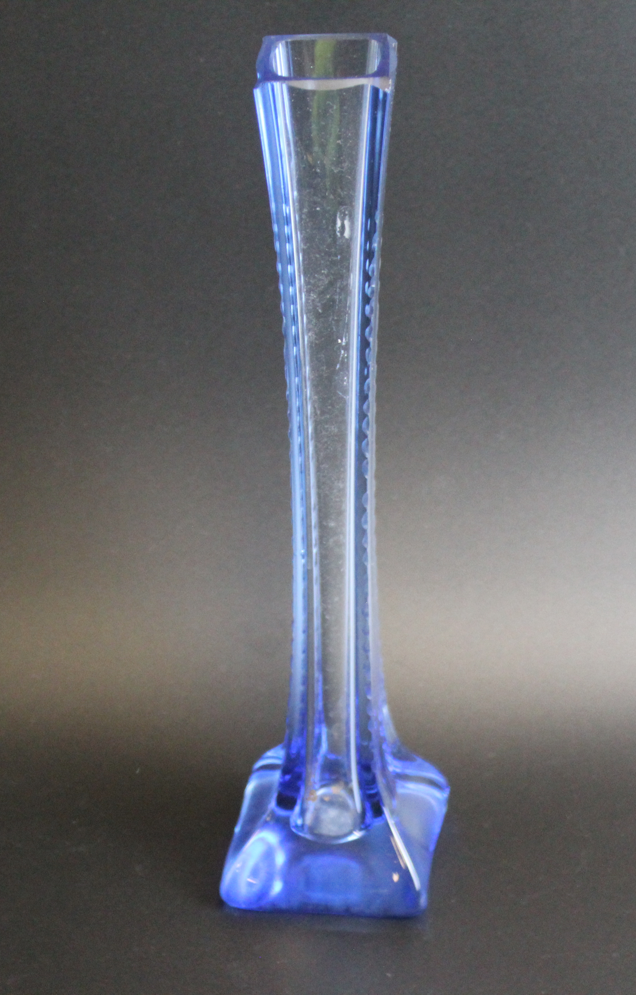 Ваза-Берц. Стекло. Винтаж 30-е г. СССР. Синяя. 23 см. Ребро рефленое. Без сколов и трещин XF