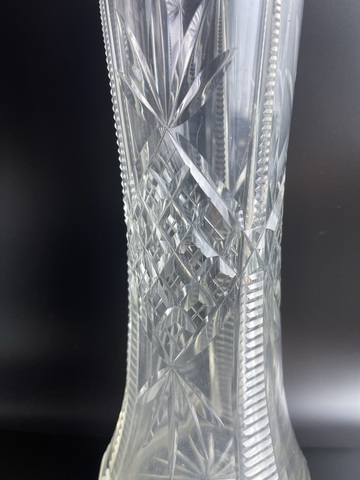 Ваза большая хрустальная, 37 см, советский хрусталь с алмазными гранями, винтаж СССР 1960-1990 гг. Присутствуют следы использования - налет на дне вазе, незначительный скол на вазе, состояние на фото