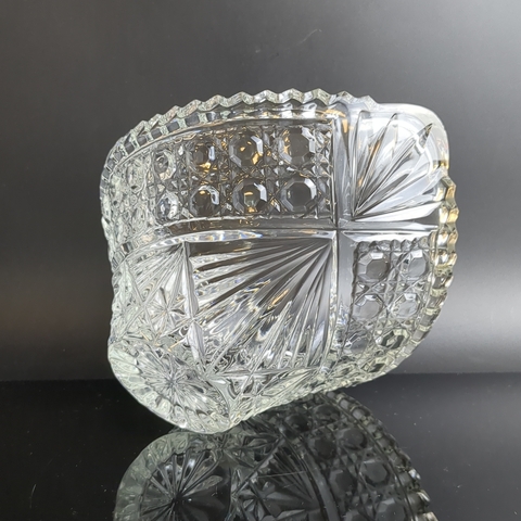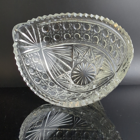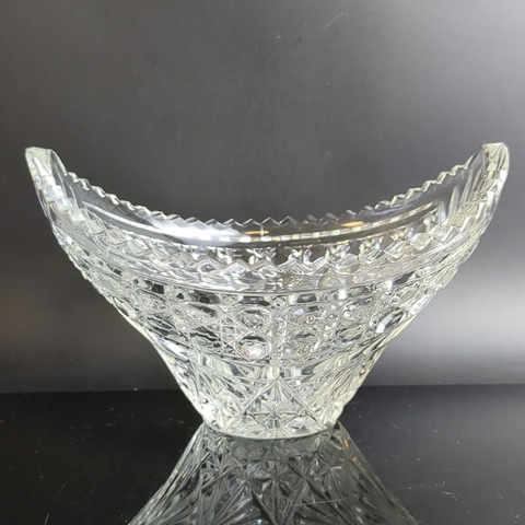 Ваза для фруктов и конфет, хрустальная, алмазные грани, резной геометрический орнамент, в виде ладьи, винтаж СССР 1970-1990 гг. Высота - 12.5 см, длина - 20 см. Присутствуют следы использования- состояние на фото