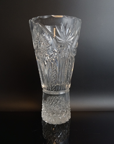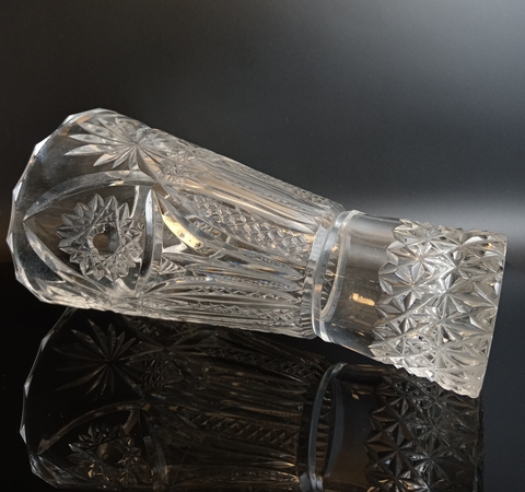 Ваза для цветов хрустальная, 25 см, алмазная грань, изящный декор, винтаж СССР 1970-1990 гг. Присутствуют следы использования- состояние на фото