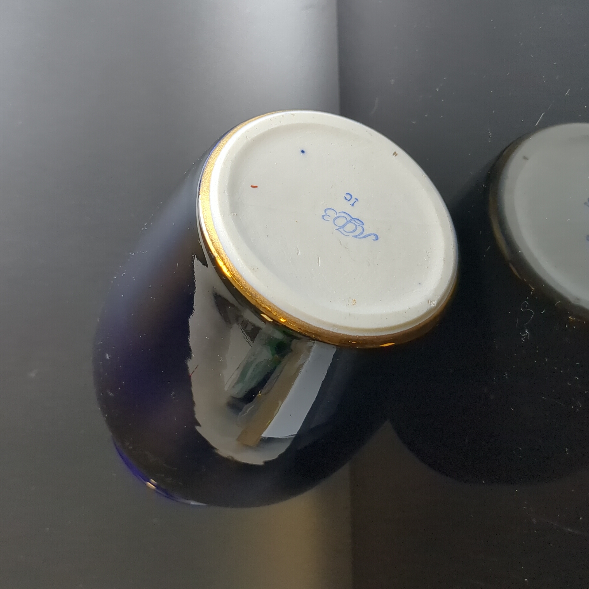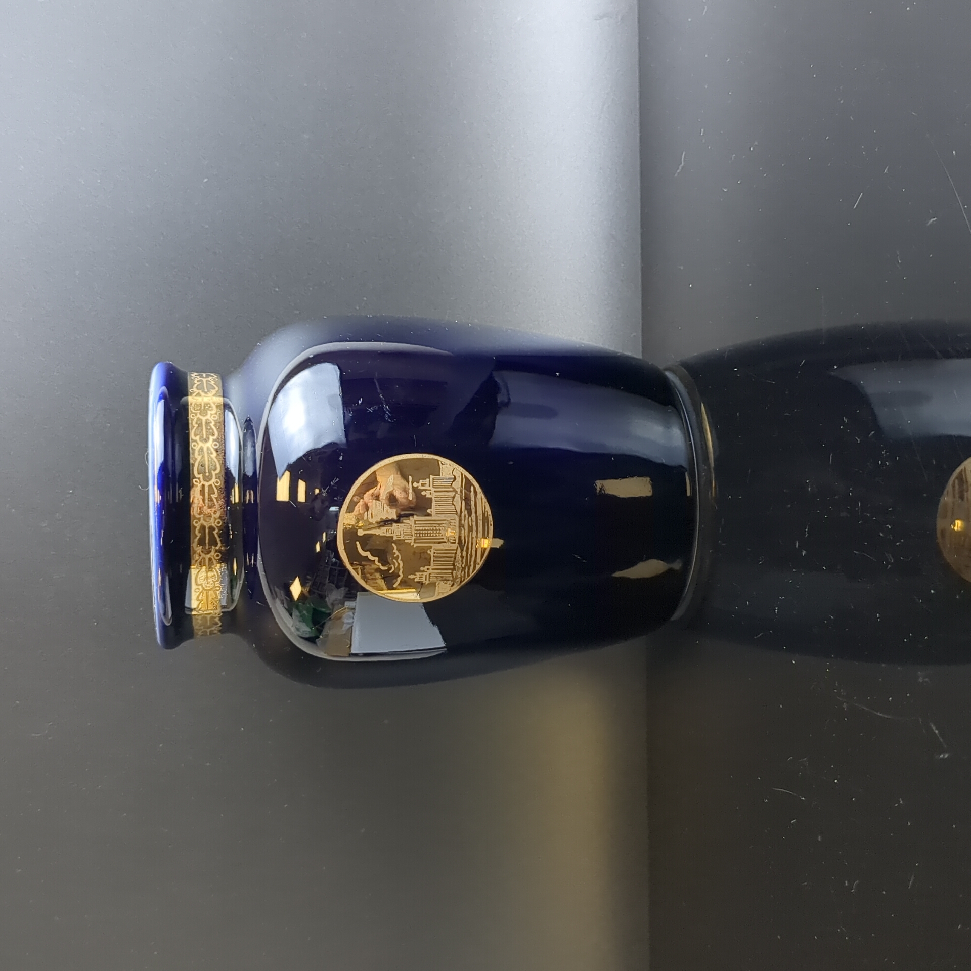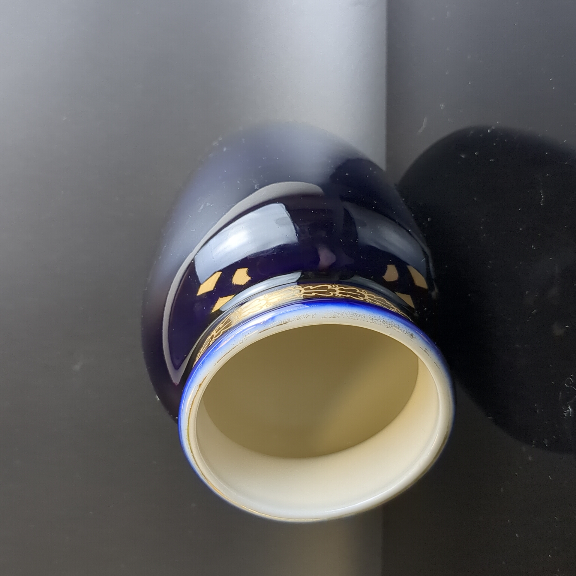 Ваза кобальт с клеймом ЛФЗ из периода СССР: винтажная роскошь в вашем доме! Высота - 15 см, диаметр верха - 8 см. Состояние на фото, присутствуют следы бытования, частично стерта позолота.