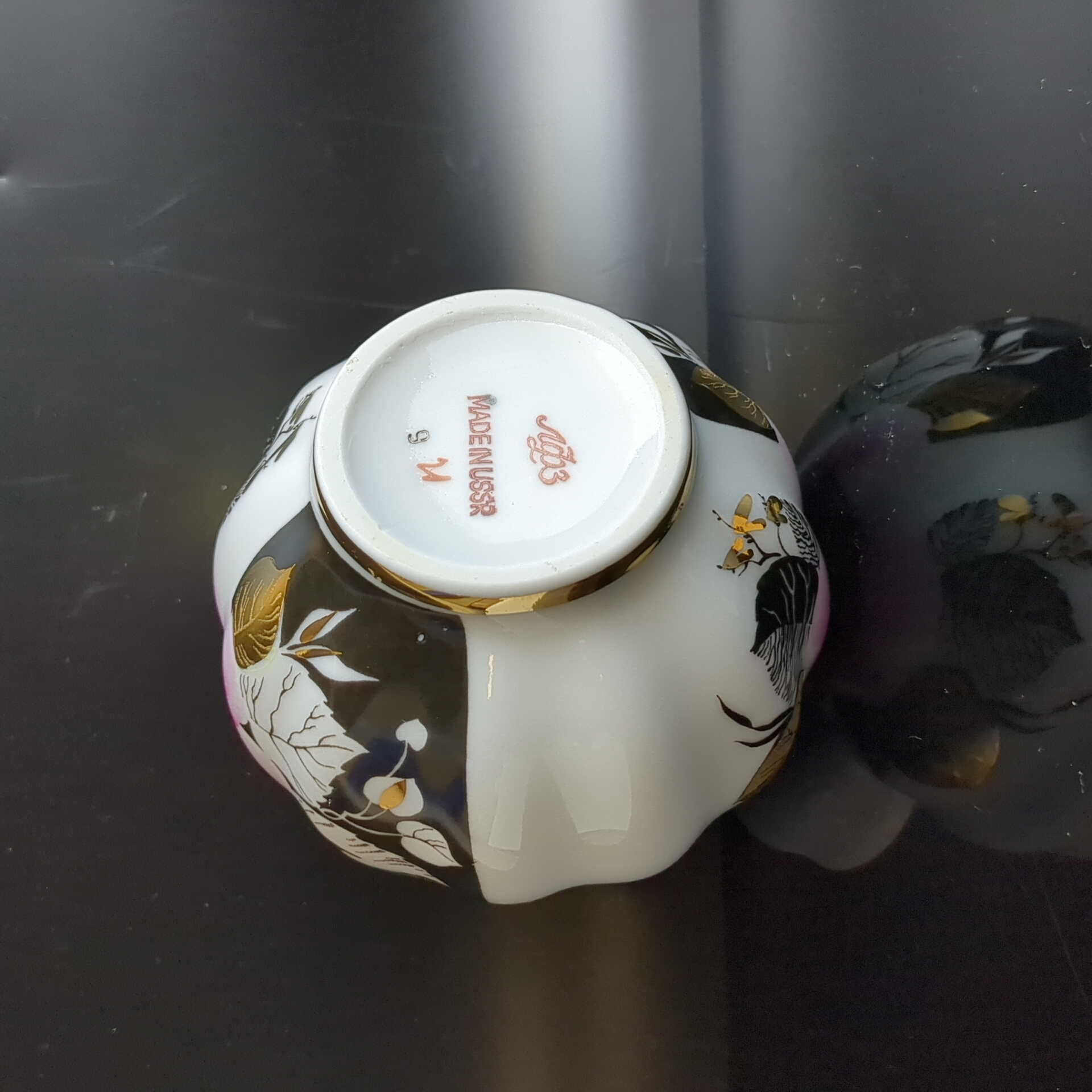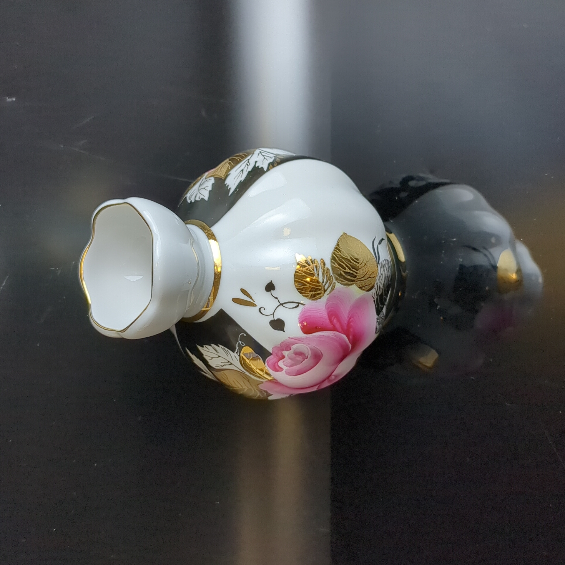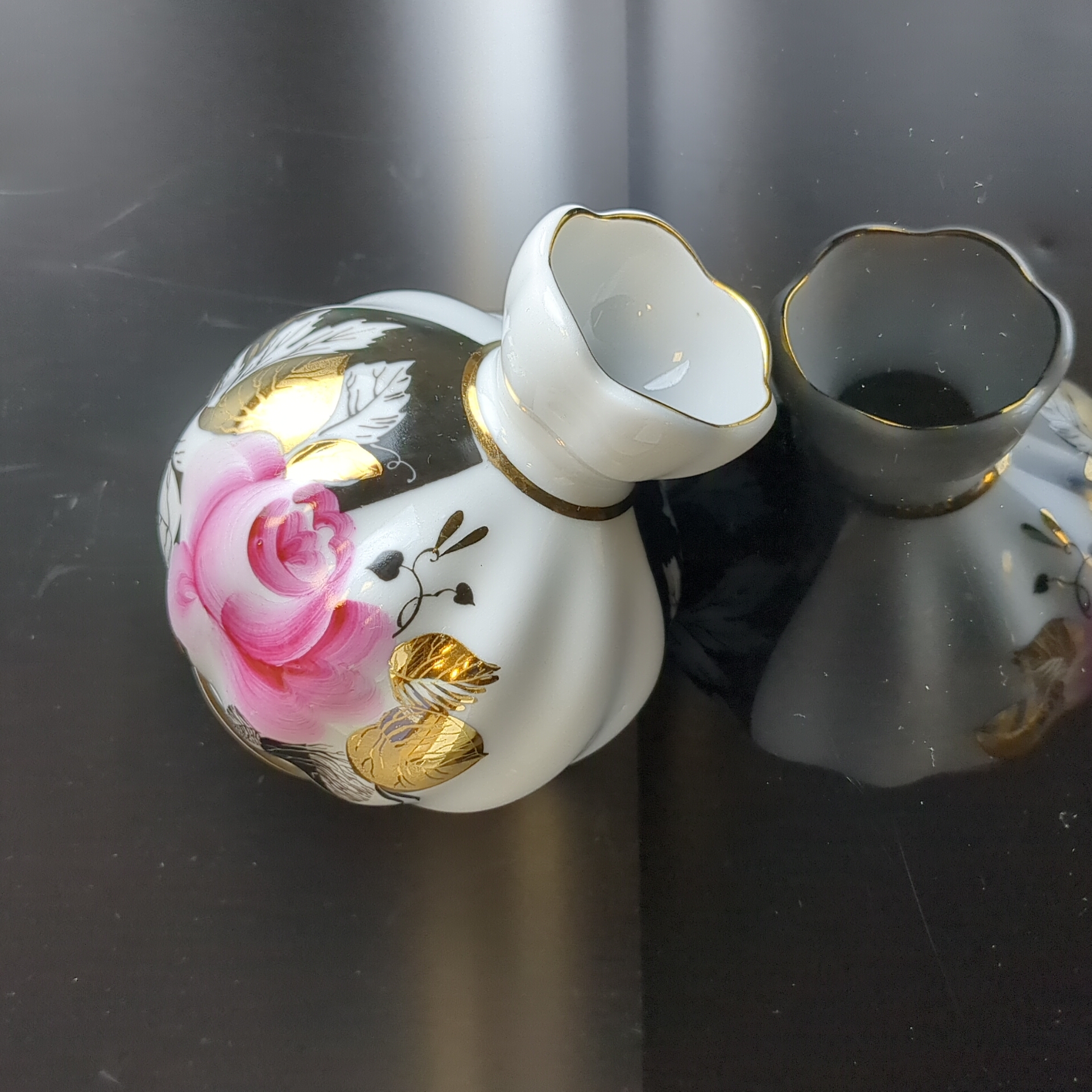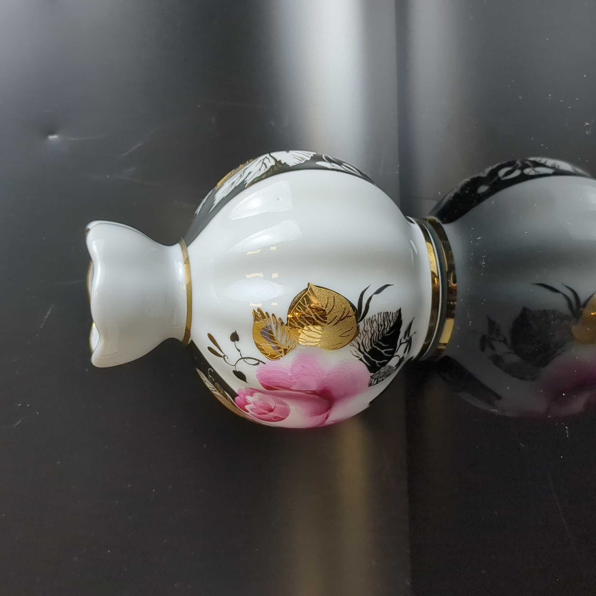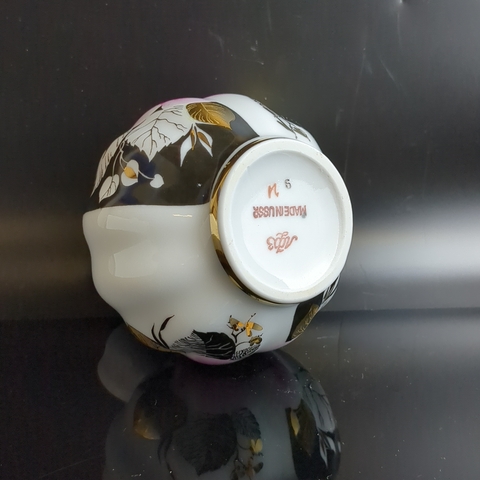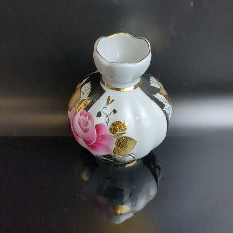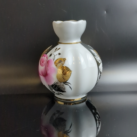 Ваза для цветов фарфоровая "Роза" золочение, роспись, высота - 12 см, ЛФЗ сделано в СССР, винтаж 1970-1990 гг. Состояние на фото