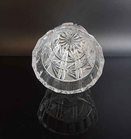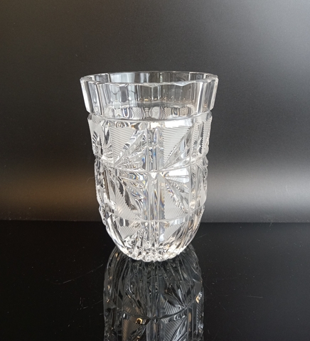 Ваза для цветов хрусталь алмазная грань, геометрический орнамент, винтаж СССР 1970-1990 гг. Высота - 14.5 см, диаметр верха - 10.5 см. Присутствуют следы использования- состояние на фото