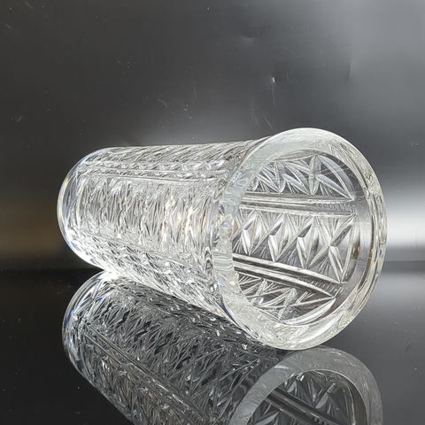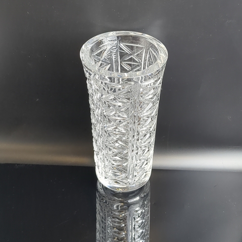 Ваза для цветов хрустальная, алмазная грань, геометрический орнамент, высота -22.5 см, винтаж СССР 1970-1990 гг. Диаметр верха - 11 см. Толстый хрусталь. Состояние на фото