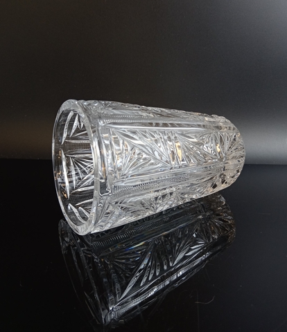 Ваза для цветов хрустальная алмазная грань, геометрический узор, винтаж СССР 1970-1990 гг. Высота -15 см, диаметр верха - 9.5 см. Присутствуют следы использования- состояние на фото