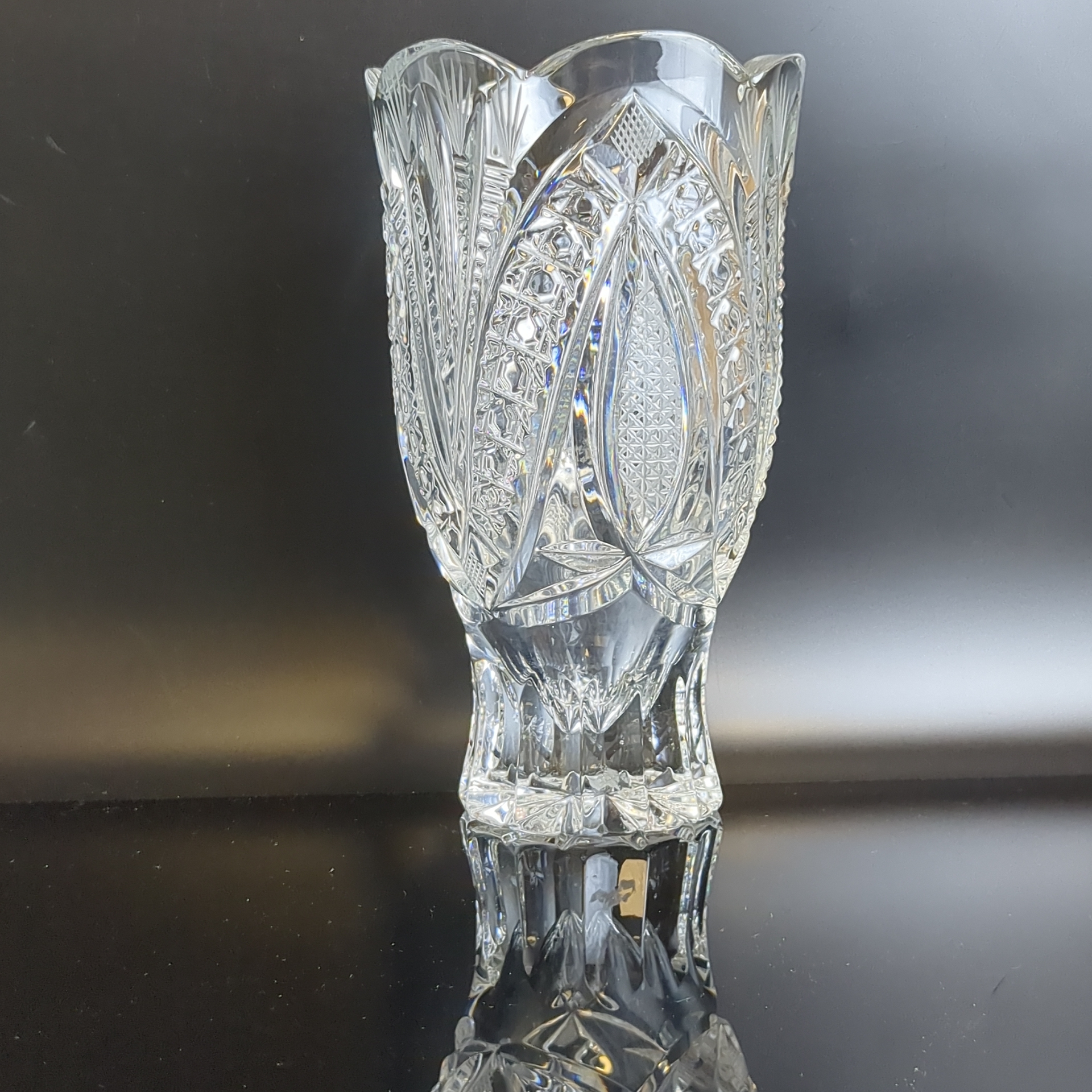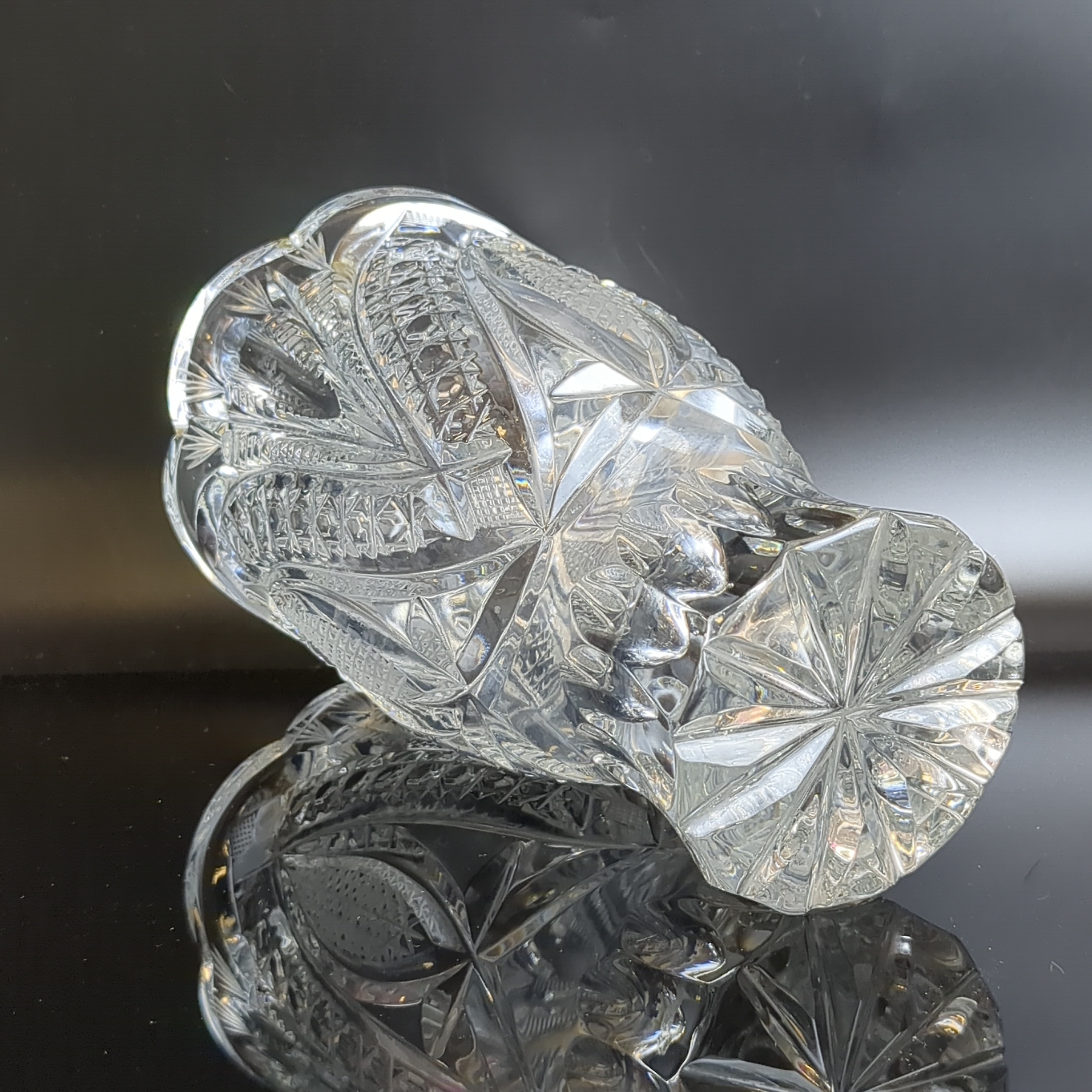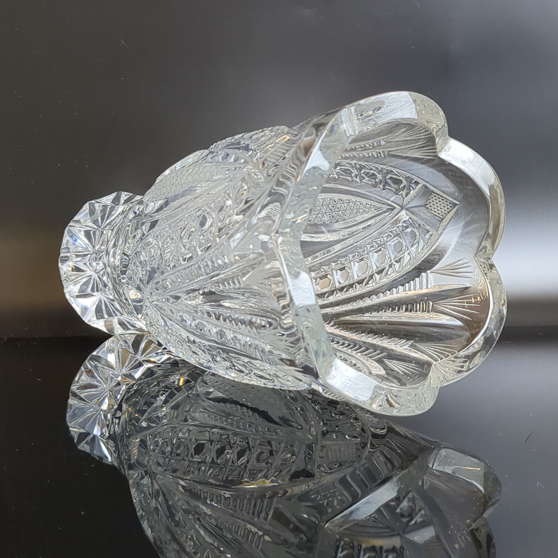 Ваза для цветов хрустальная, алмазная грань, изящное исполнение, ручная резка, богемский хрусталь, высота- 20 см, винтаж времён СССР 1970-1990 гг. Состояние на фото