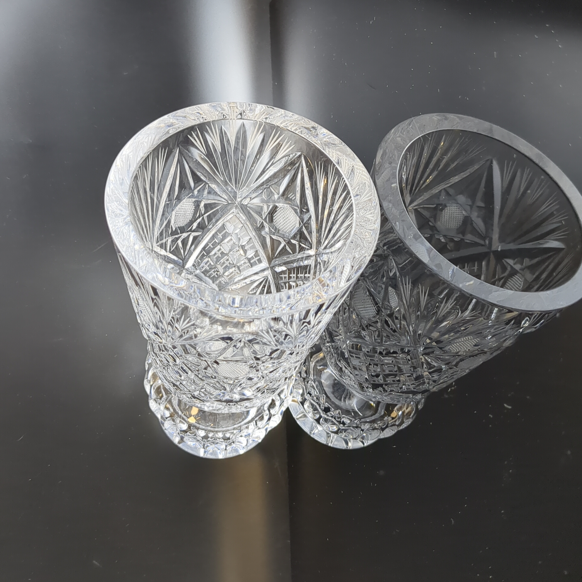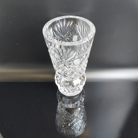Ваза для цветов хрустальная алмазные грани, геометрический узор, высота -18.5 см, винтаж СССР 1970-1990 гг. Диаметр верха - 11 см. Состояние на фото