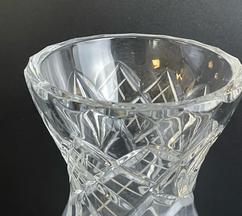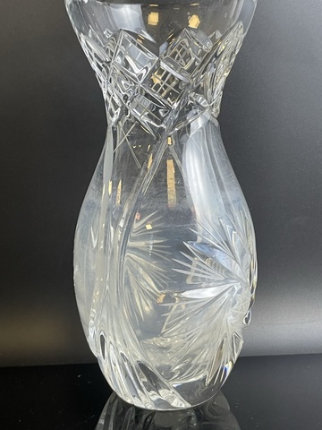 Ваза для цветов хрустальная, изящный резной декор, алмазная грань, высота - 22.5 см, винтаж СССР 1970-1990 гг. Диаметр верха- 10 см. Присутствуют следы использования - состояние на фото