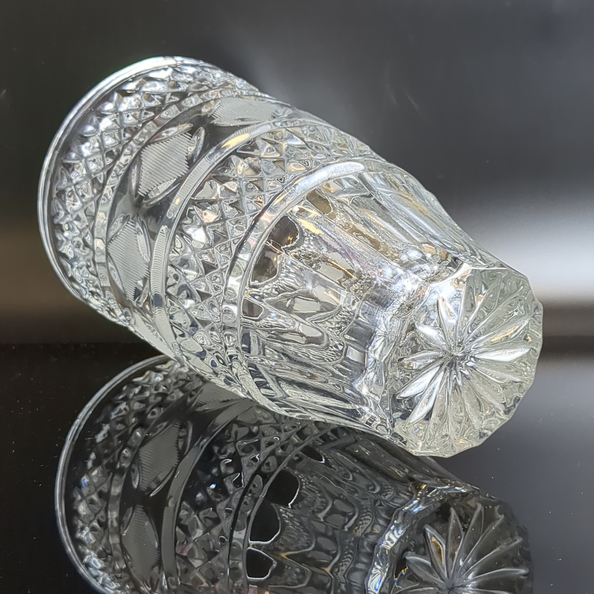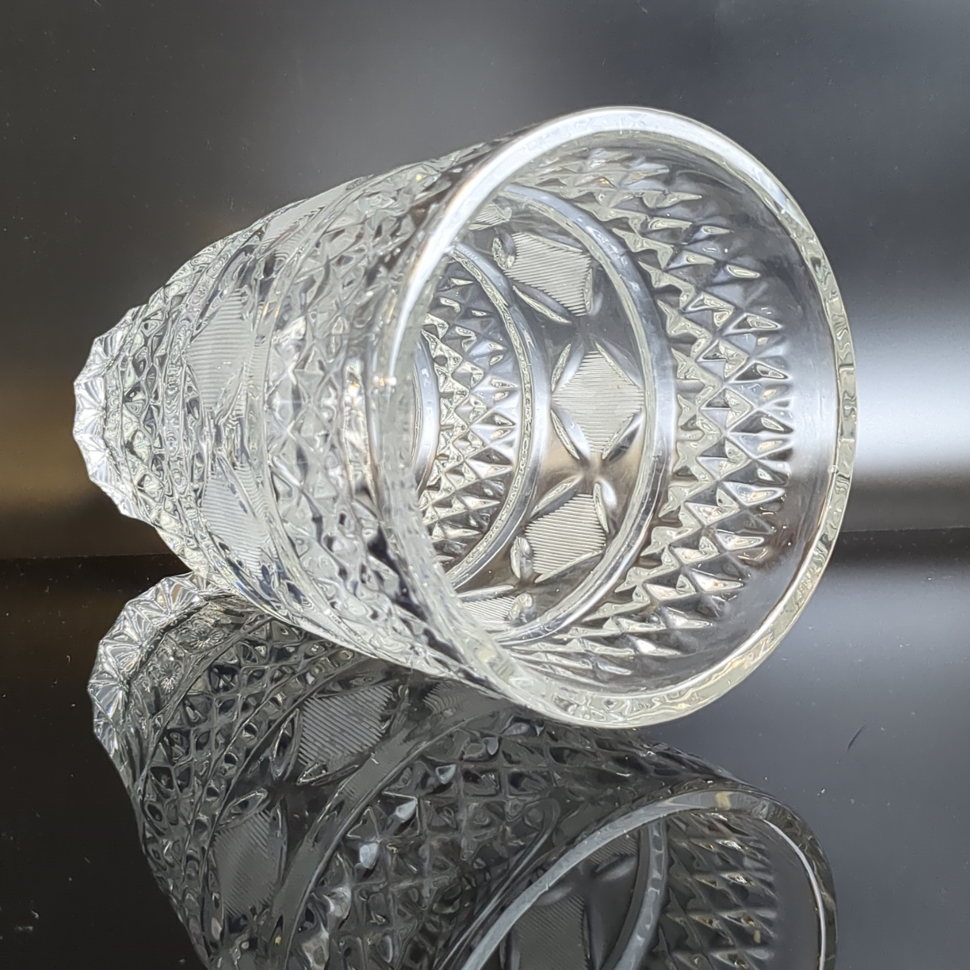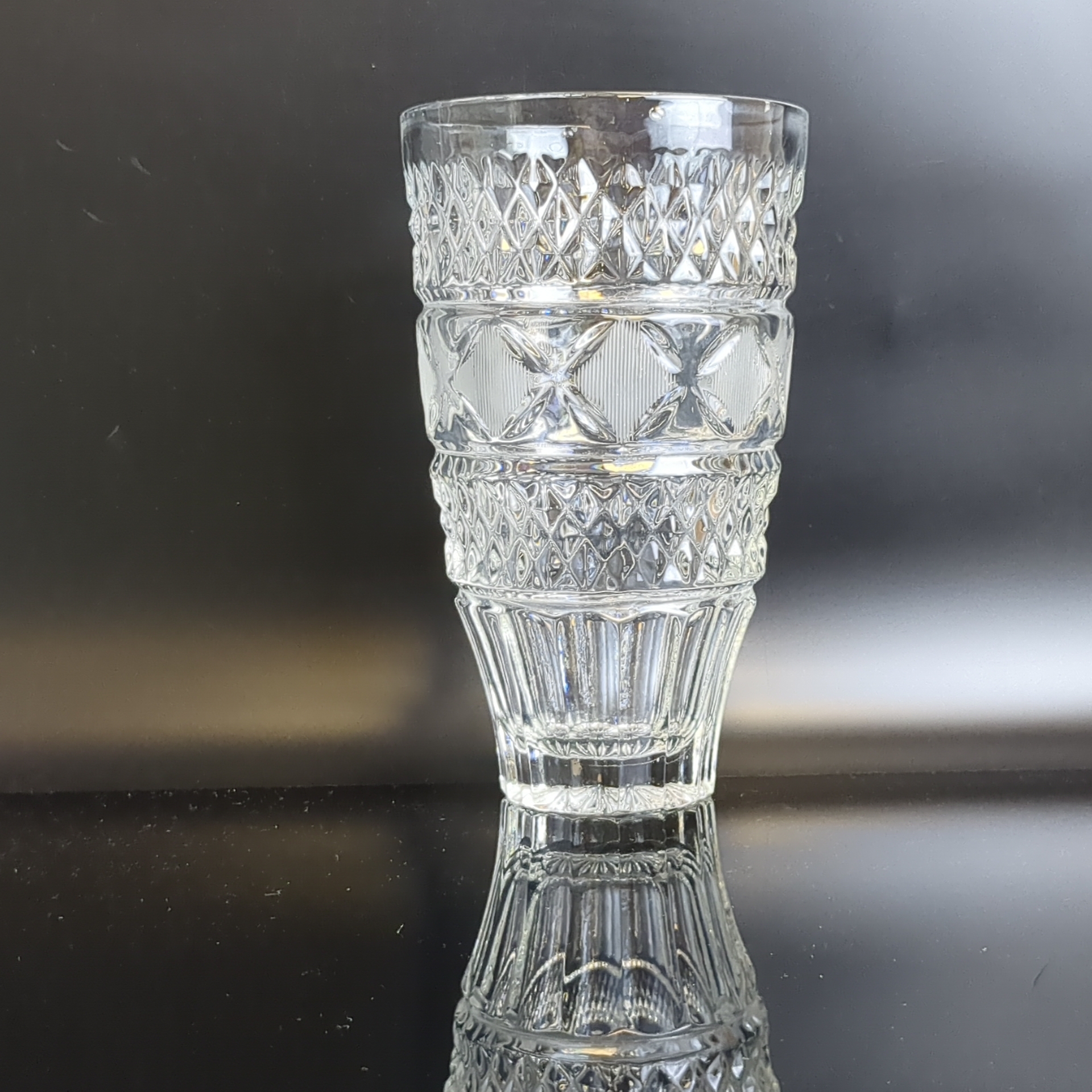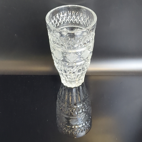 Ваза для цветов хрустальная с алмазной гранью, геометрическим орнаментом, матовые элементы, высота - 19 см, винтаж СССР 1970-1990 гг. Диаметр верха - 11.5 см. Состояние на фото