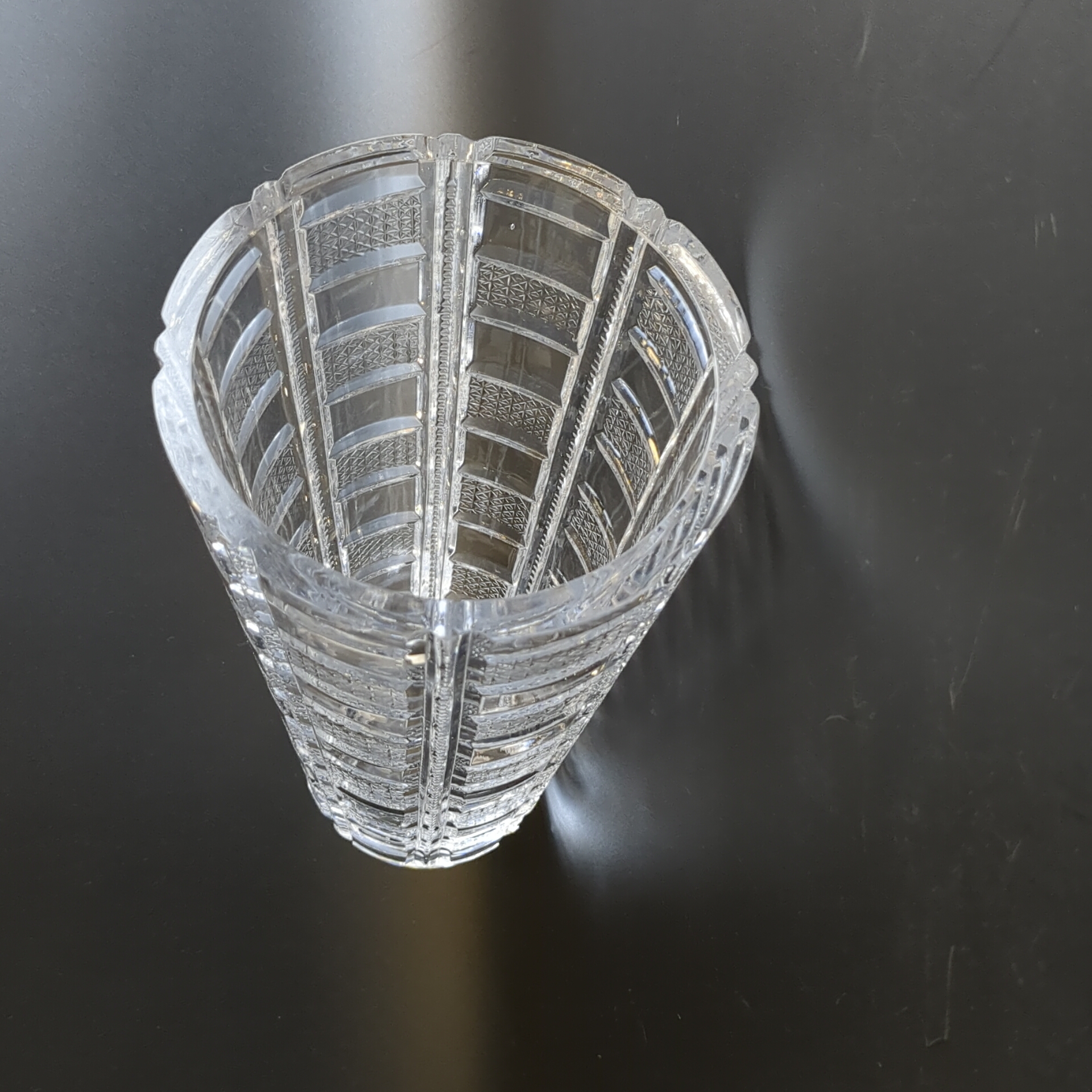 Ваза для цветов изящная стекло, резной декор, высота - 23 см, винтаж времён СССР 1970-1990 гг. Диаметр верха - 12 см. Состояние на фото