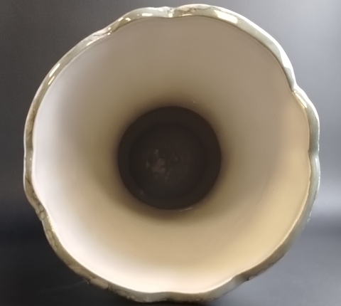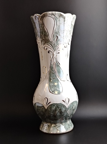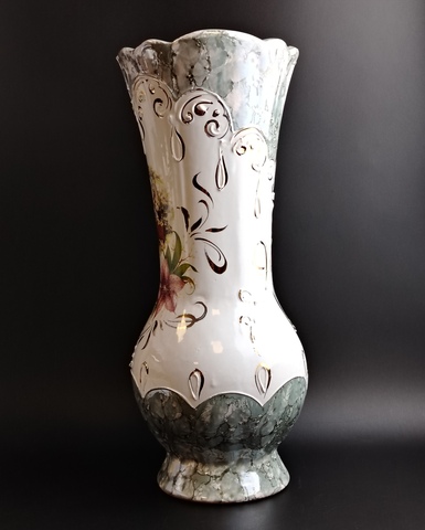 Ваза для цветов керамическая изящная с изображением галантной сцены, девушка и юноша сидят под деревом, золочение, декор, винтаж СССР 1970-1990 гг. Высота - 35 см. Присутствуют следы использования- состояние на фото