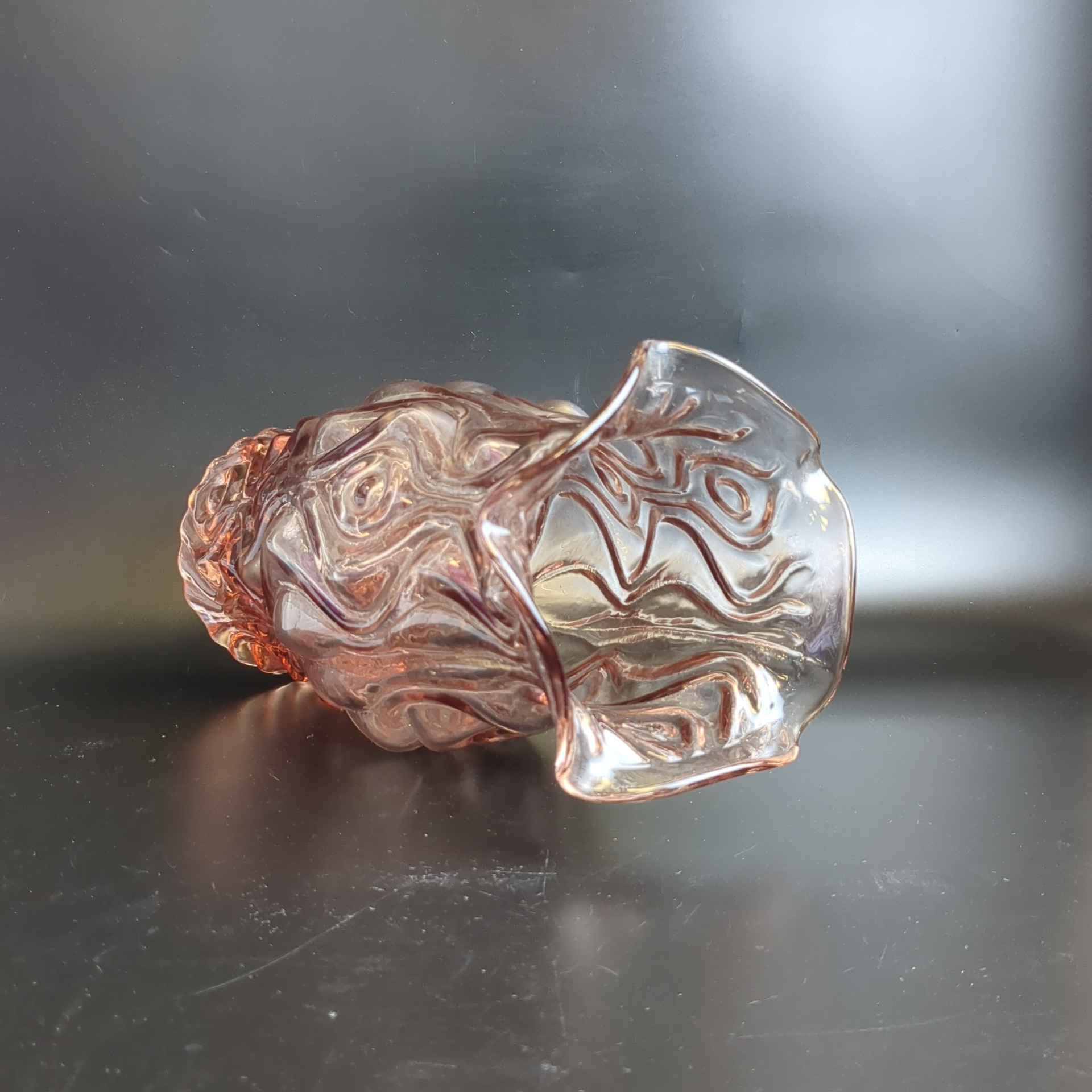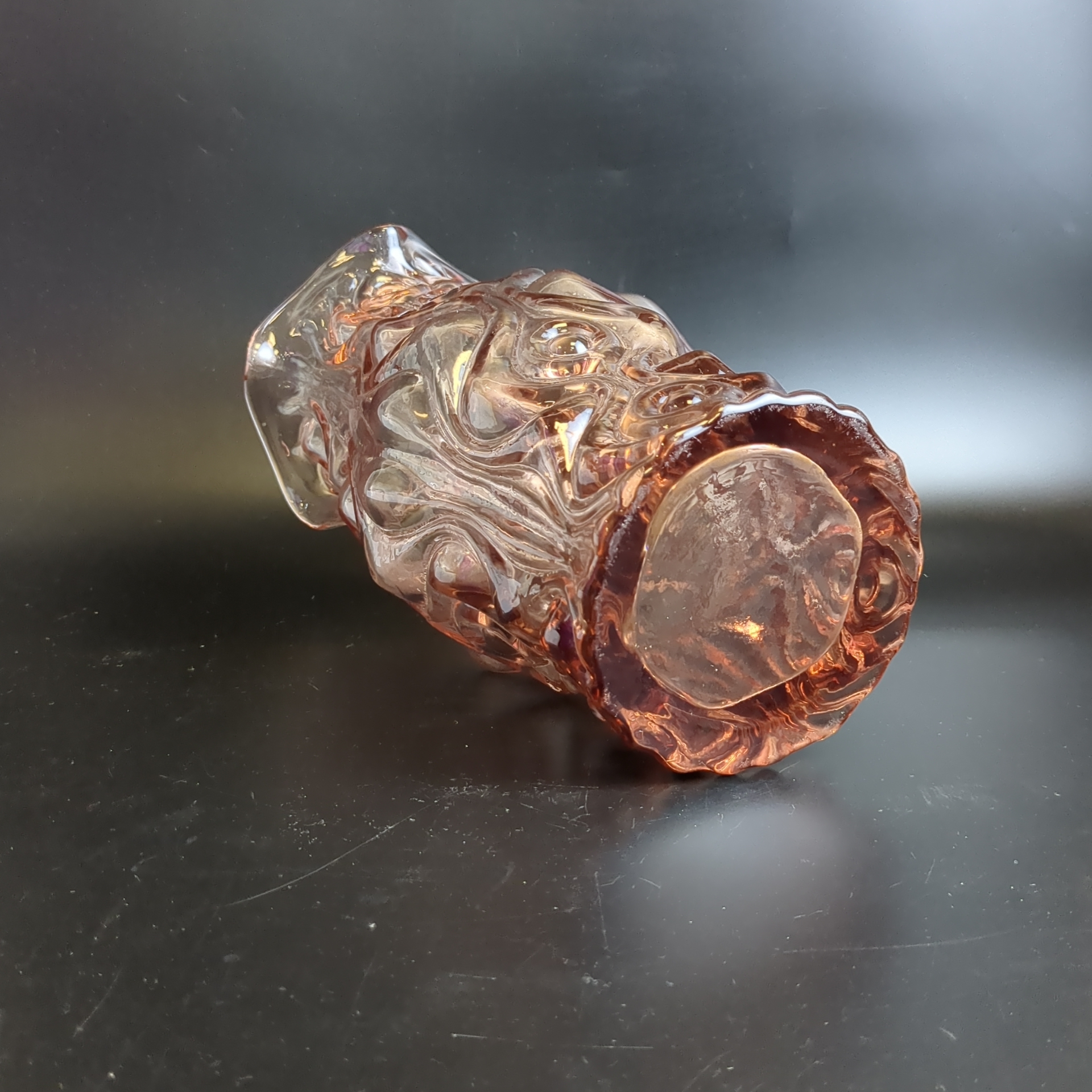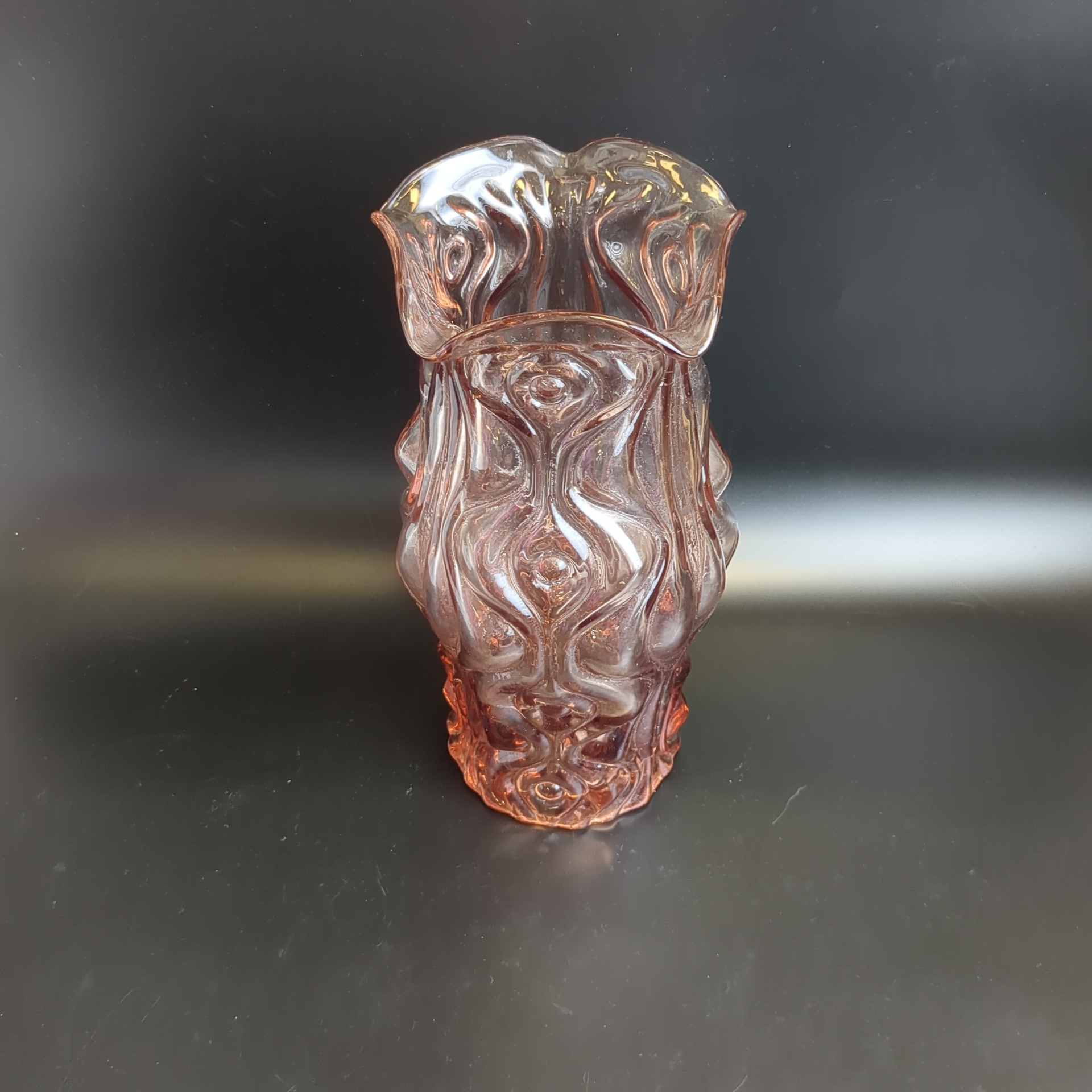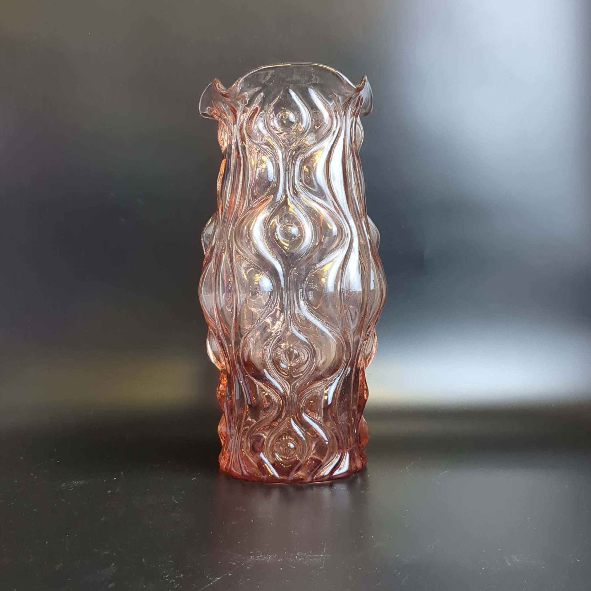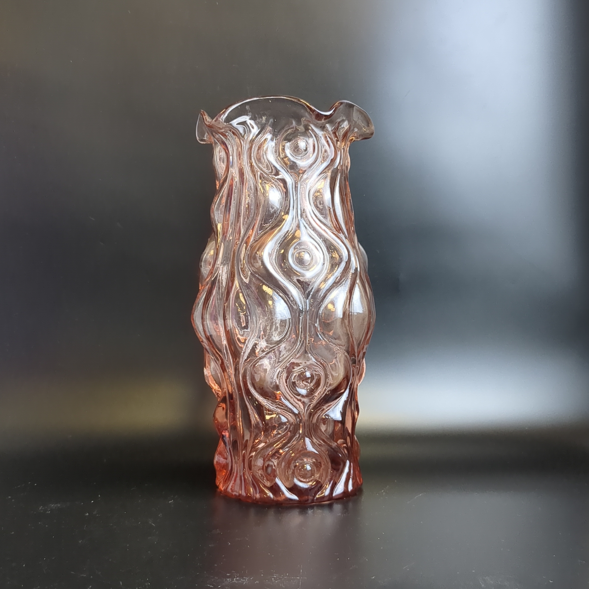 Уникальная ваза из цветного розового стекла завода «Неман», высотой 25 см – это стильное украшение интерьера! Виниловая гладкость сочетается с изящным рельефным орнаментом, придавая интерьеру нотки элегантности эпохи СССР (1950–1980-е). Добавьте своему дому атмосферу уюта, тепла воспоминаний о прошлом и подчеркните индивидуальность дизайна.