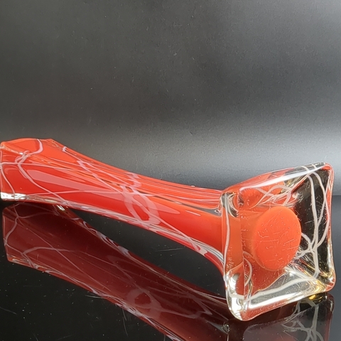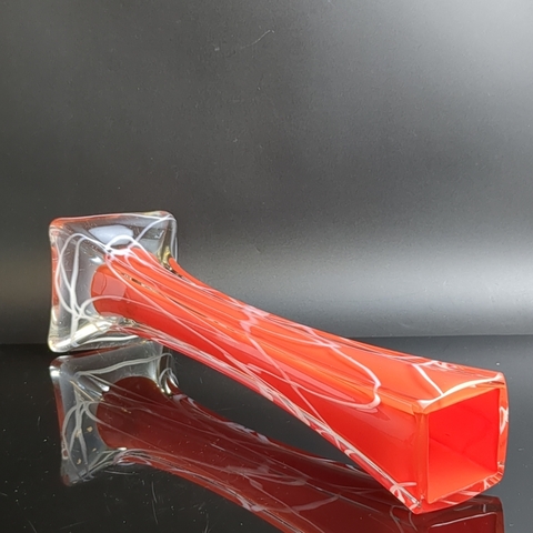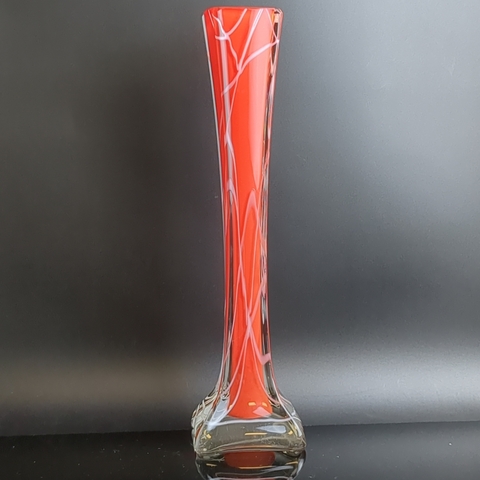 Ваза формы «Берц», двухслойное стекло, прозрачное, красное, белое, гутная техника, высота - 31.5 см, шикарная, винтаж времён СССР 1930-1970 гг. Присутствуют следы использования- состояние на фото