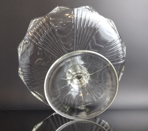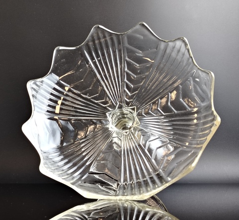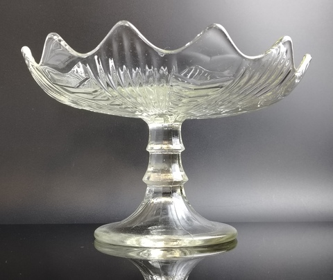 Ваза фруктовница для сервировки на ножке, стекло, рефленый декор, винтаж СССР 1970-1990 гг. Высота - 14.5 см, диаметр верха - 23 см. Присутствуют следы использования- состояние на фото