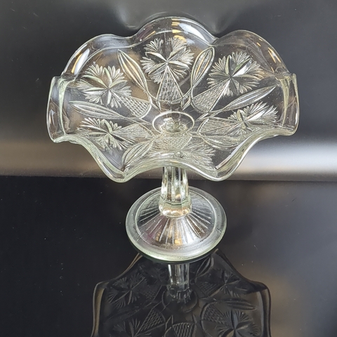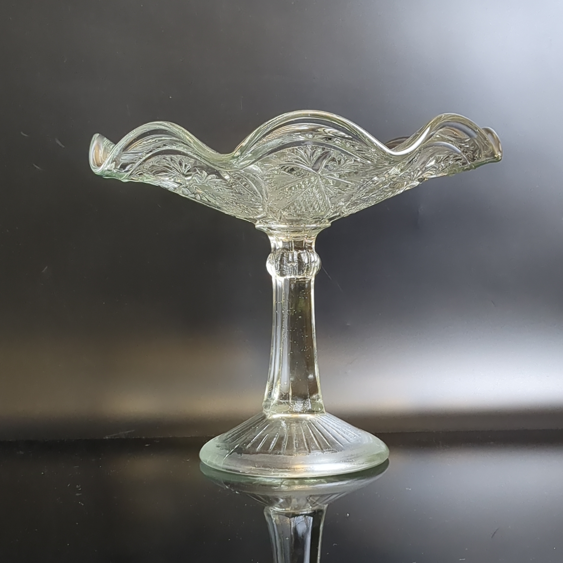 Ваза фруктовница, конфетница стеклянная "Васильки" ГХЗ, Мальцов, коллекционная до 1917 года, D-21.5 см, винтаж Царской России. Высота - 18 см. Состояние на фото