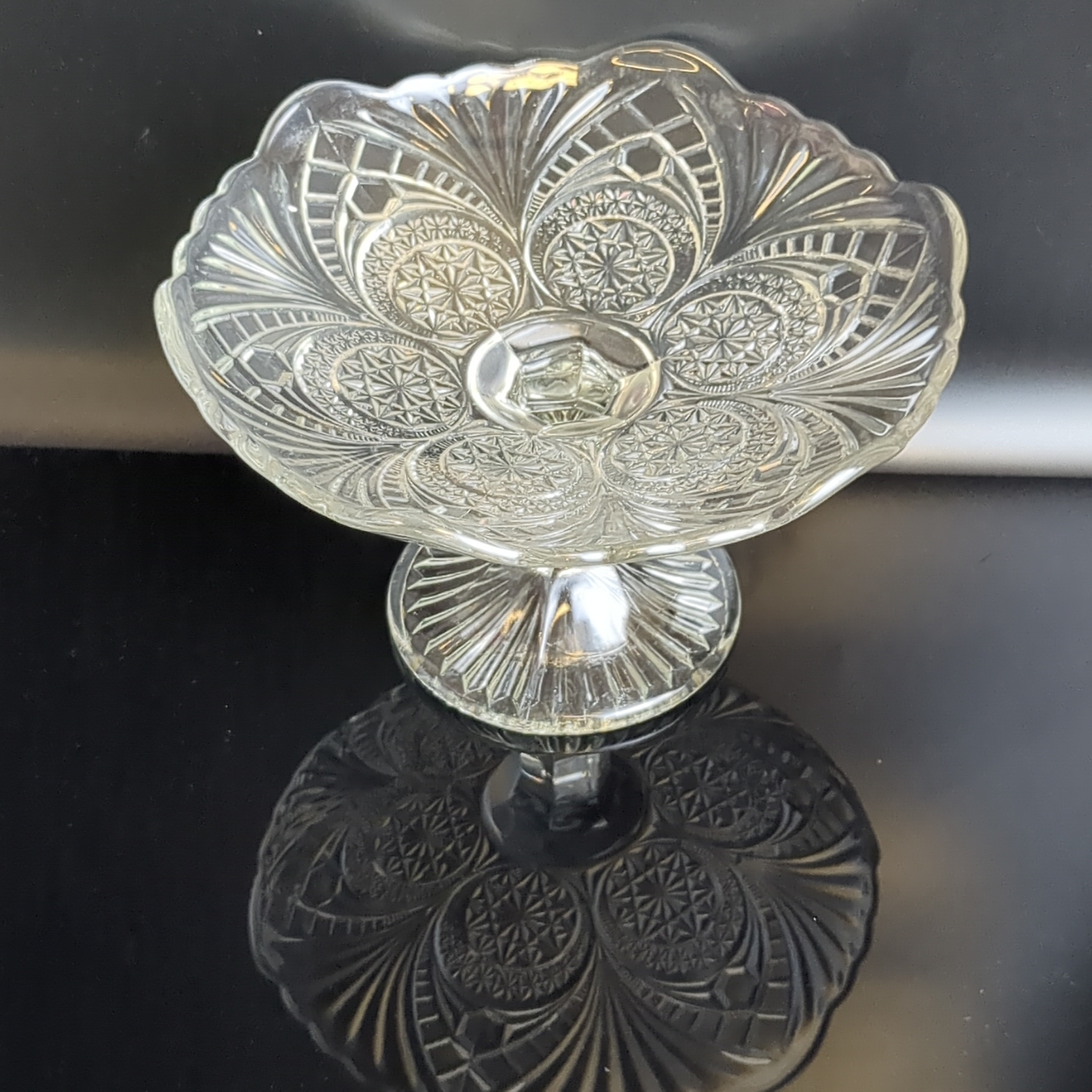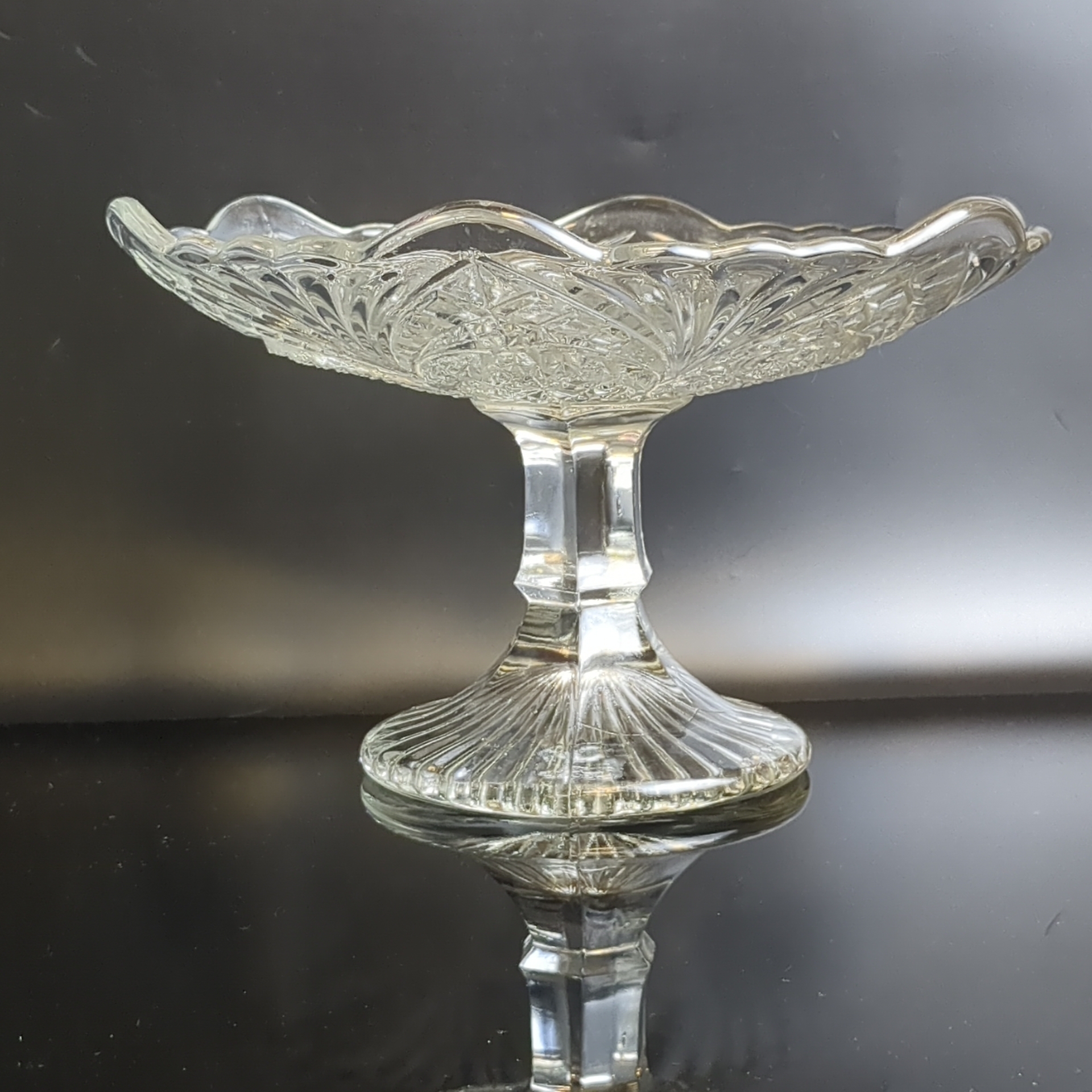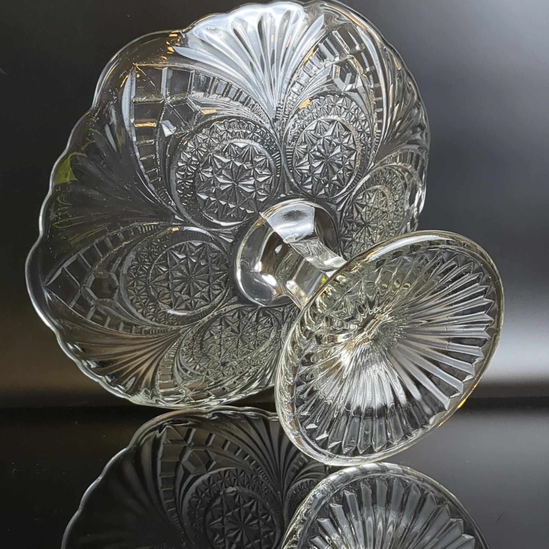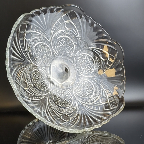 Ваза фруктовница стекло на ножке с объёмным геометрическим и растительным узором, высота - 14 см, диаметр верха - 22.5 см. Винтаж СССР 1970-1990 гг. Состояние на фото