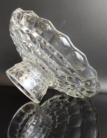Ваза фруктовница стекло с рельефным декором на ножке ГХЗ, диаметр верха - 23 см, винтаж СССР 1970-1990 гг. Высота - 9.5 см. Состояние на фото.