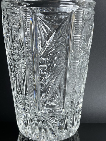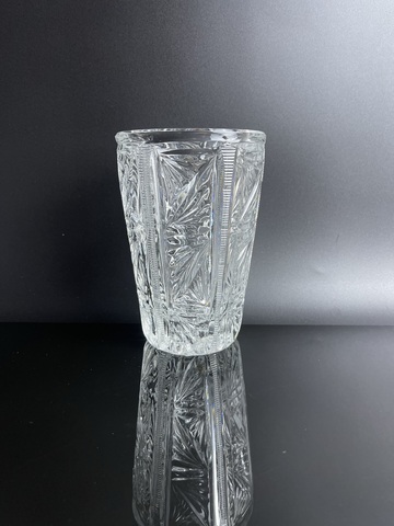 Ваза хрустальная алмазная грань интерьерная, высота -14.5 см, диаметр верха - 10 см, винтажная СССР 1970-1990 гг. Присутствуют следы использования - состояние на фото