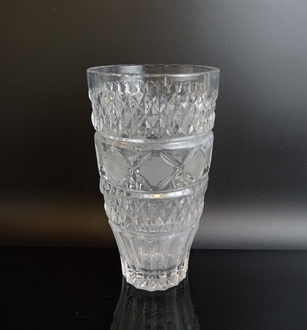 Ваза хрустальная ДХЗ геометрический орнамент, алмазная грань, высота - 19.5 см, диаметр верха - 11 см, винтаж СССР 1970-1990 гг. Присутствуют следы использования- состояние на фото