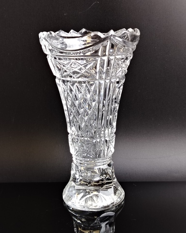 Ваза хрустальная для цветов, алмазная грань, изящный орнамент, высота -16 см, винтаж СССР 1970-1990 гг. Присутствуют следы использования- состояние на фото
