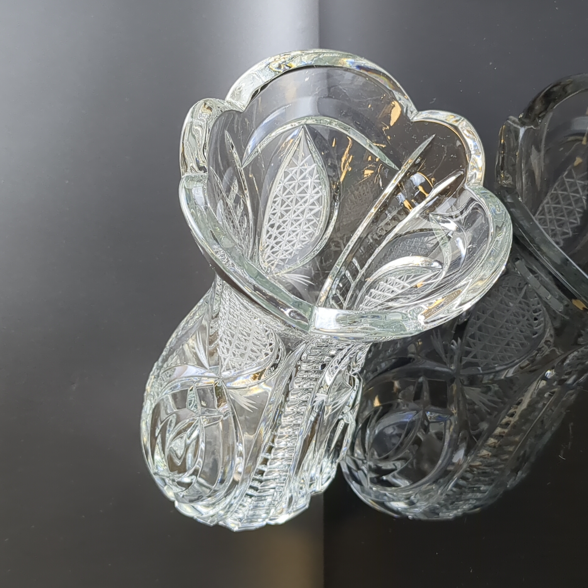 Шикарная ваза из хрусталя - винтажная роскошь в вашем доме. Высота - 25.5 см. Состояние на фото.