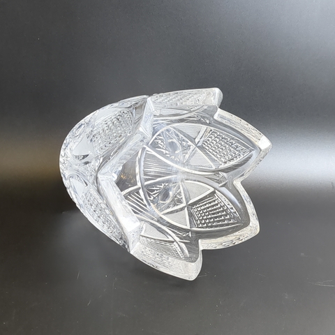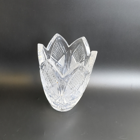 Антуражная ваза для цветов из хрусталя "Тюльпан" ЛЗХЗ автора В. Мухиной - винтажная роскошь в вашем доме. Диаметр верха - 12 см, высота - 16 см. Состояние на фото, присутствуют следы бытования, известковый налет на дне.