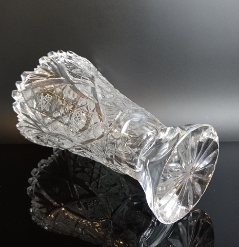 Ваза хрустальная для цветов винтажная с изящным орнаментом, алмазная грань, СССР 1970-1990 гг. Высота - 20 см, диаметр - 12.5 см.